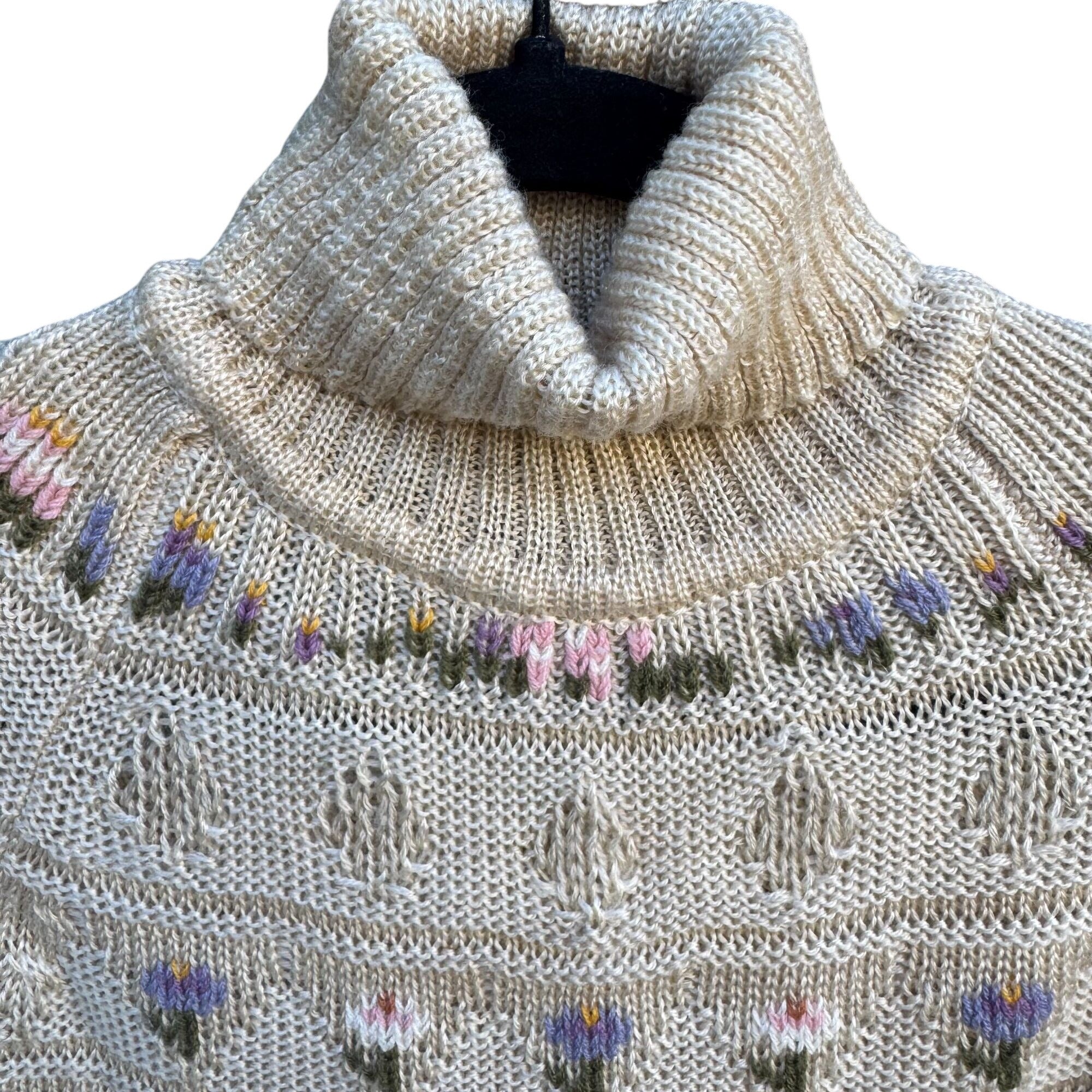 20 Ans Knits Mariea Kim Vintage Floral Embroidered Turtleneck Sweater Cottage