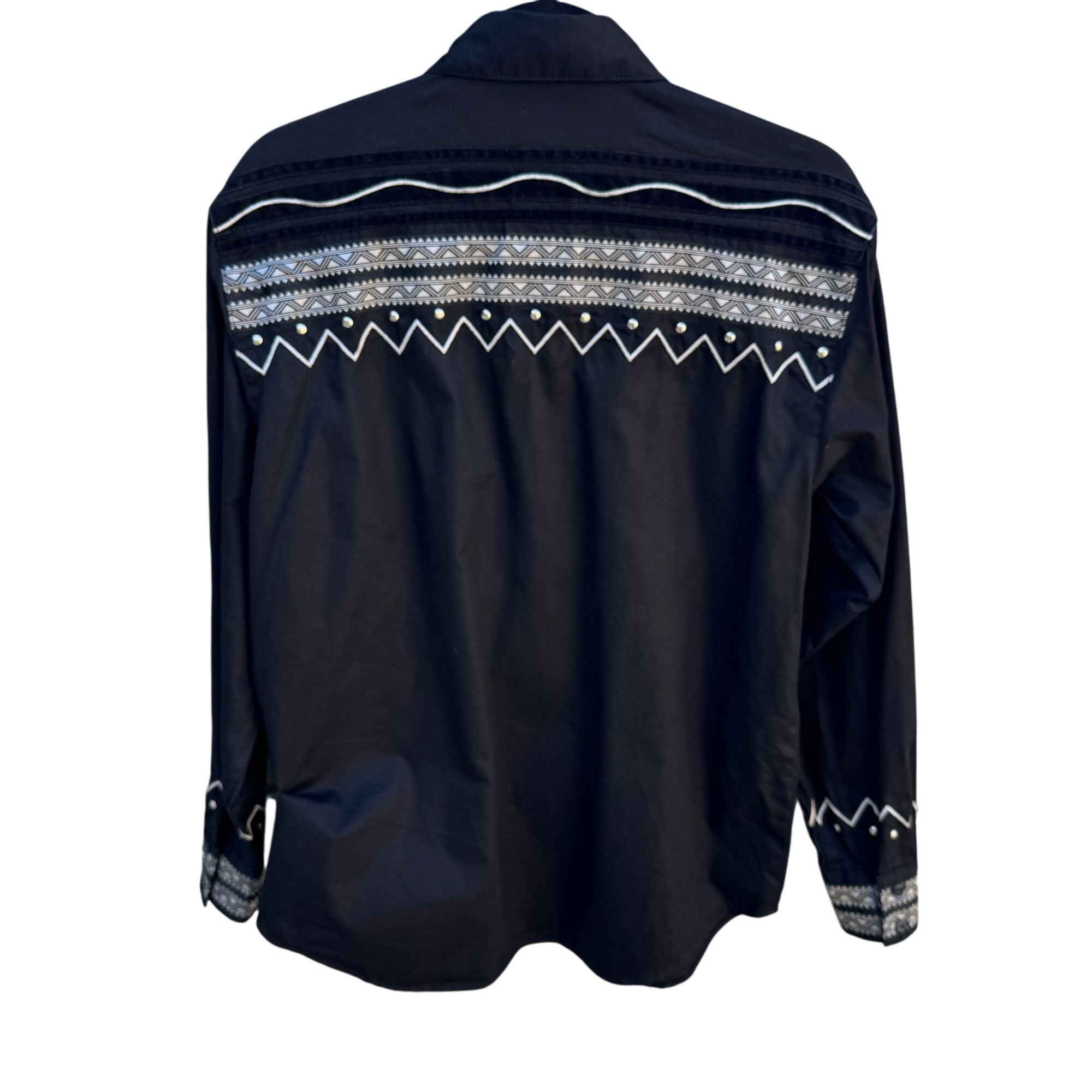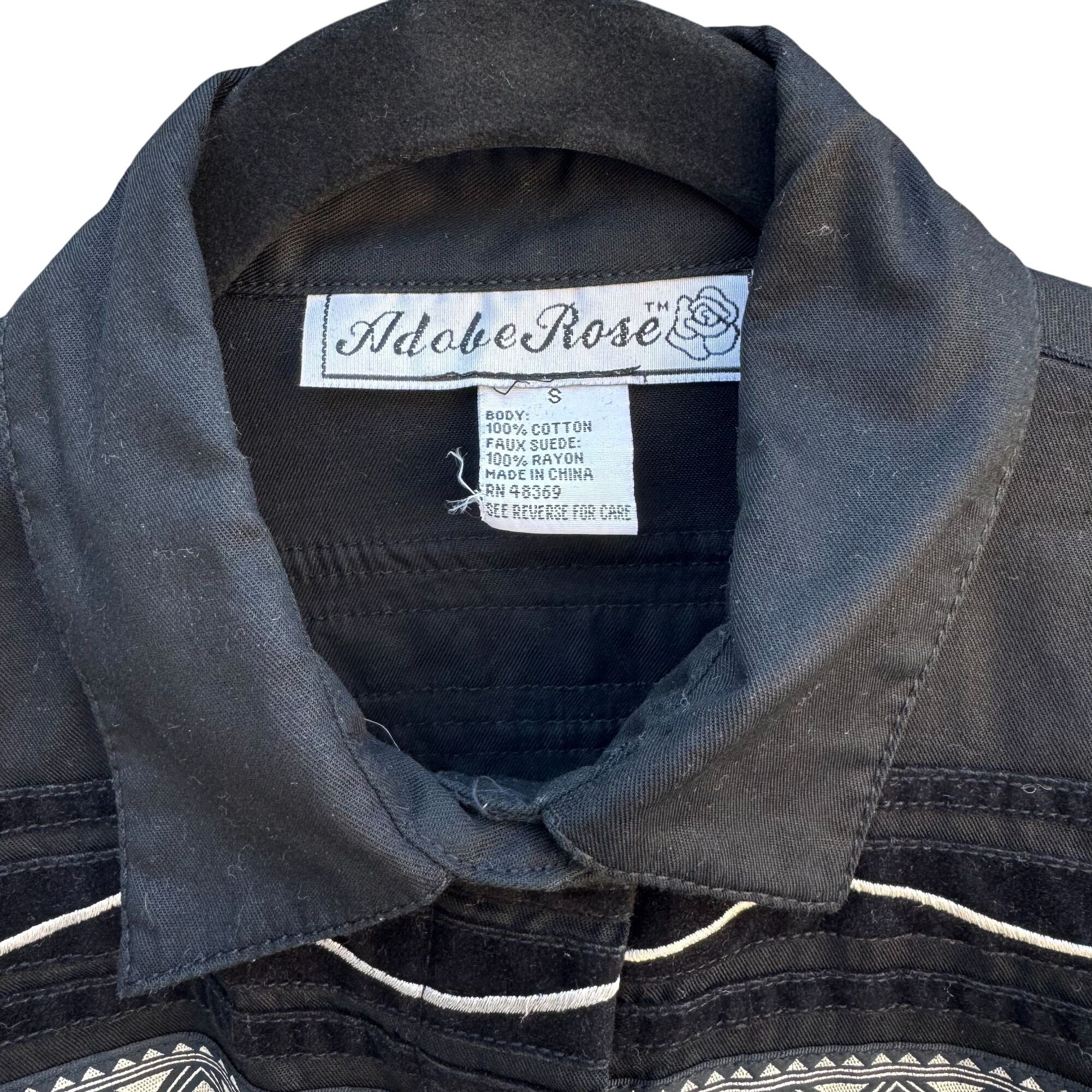 Adobe Rose Vintage Western Button-Up Shirt S Black Geometric Embroidery Studs S
