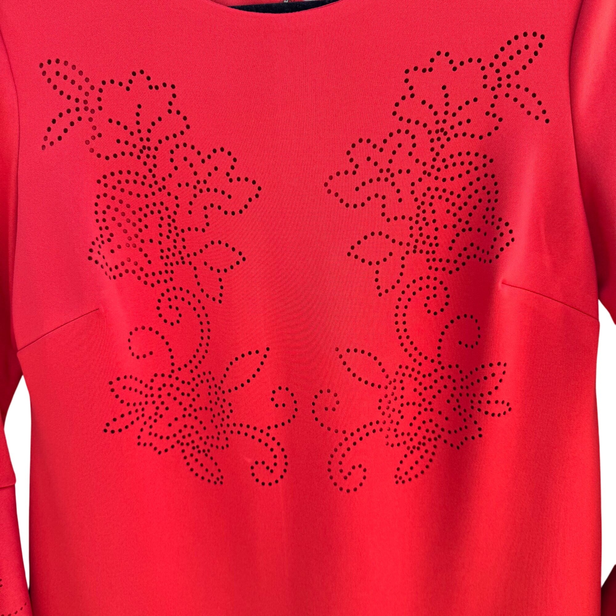 Alfani Red Bell Sleeve Scoop Neck Floral Cutouts Knee-Length Shift Dress 6P