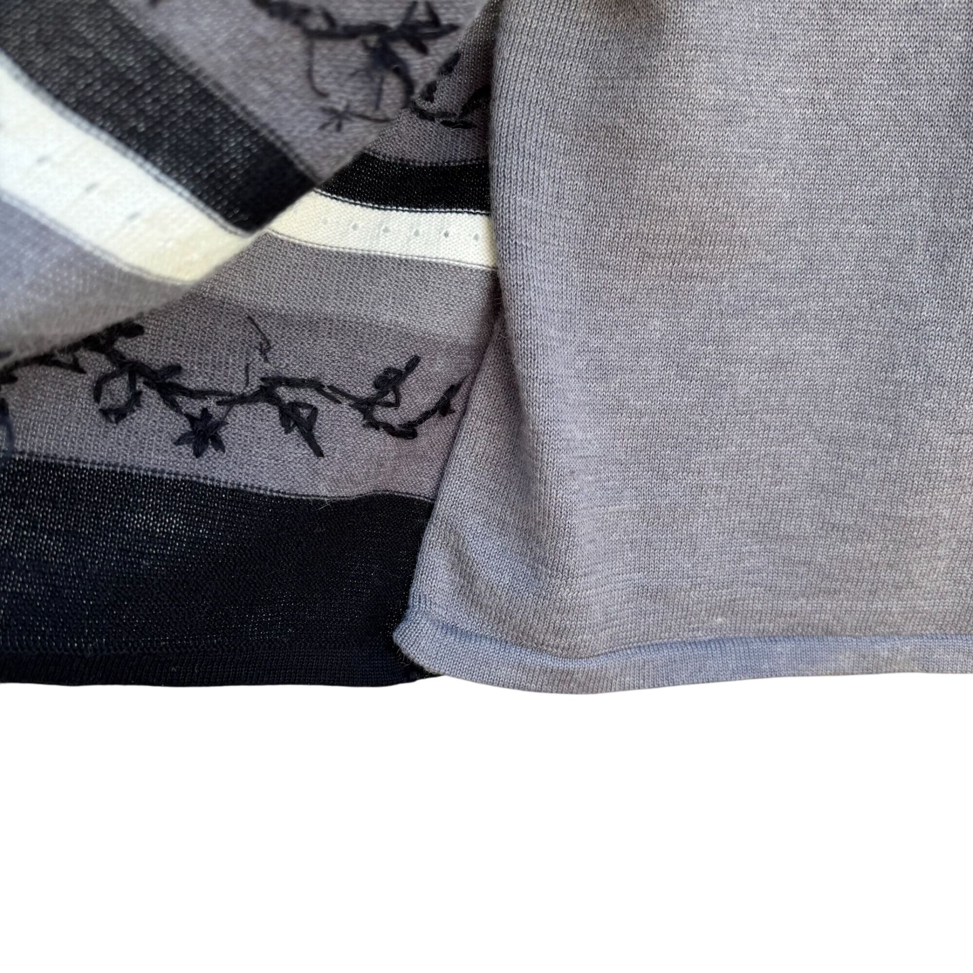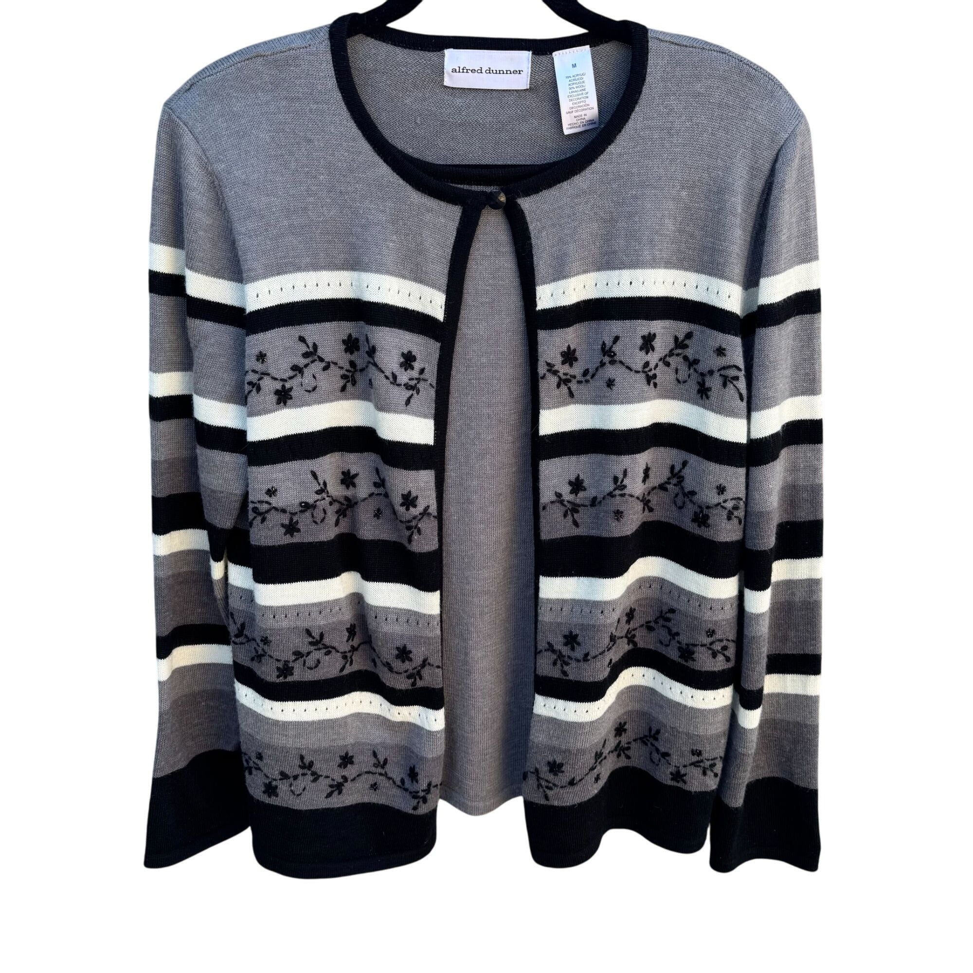 Alfred Dunner Vintage Womens Gray Cardigan Sweater Floral Embroidery Beaded M