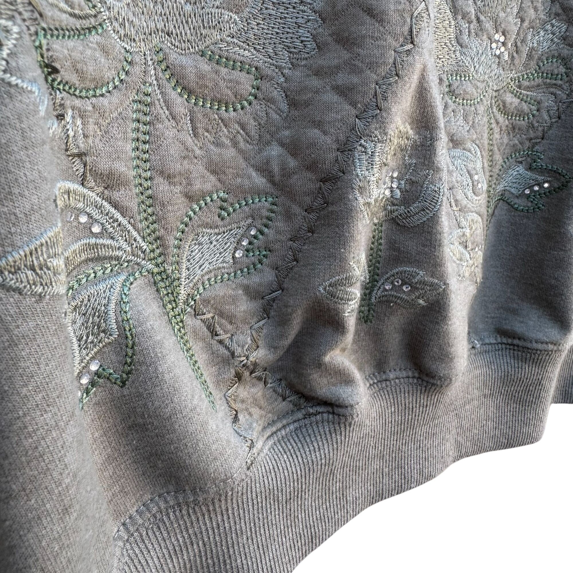 This sweatshirt, with its quilted diamond pattern and floral embellishments, keeps you cozy while looking stylish. It's like a garden party for your torso.