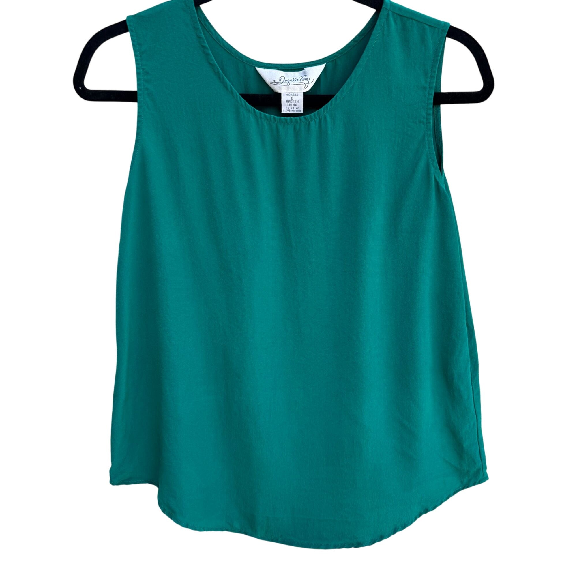 Angela Tong Womens Silk Sleeveless Lightweight Minimalist Green Blouse Top 6