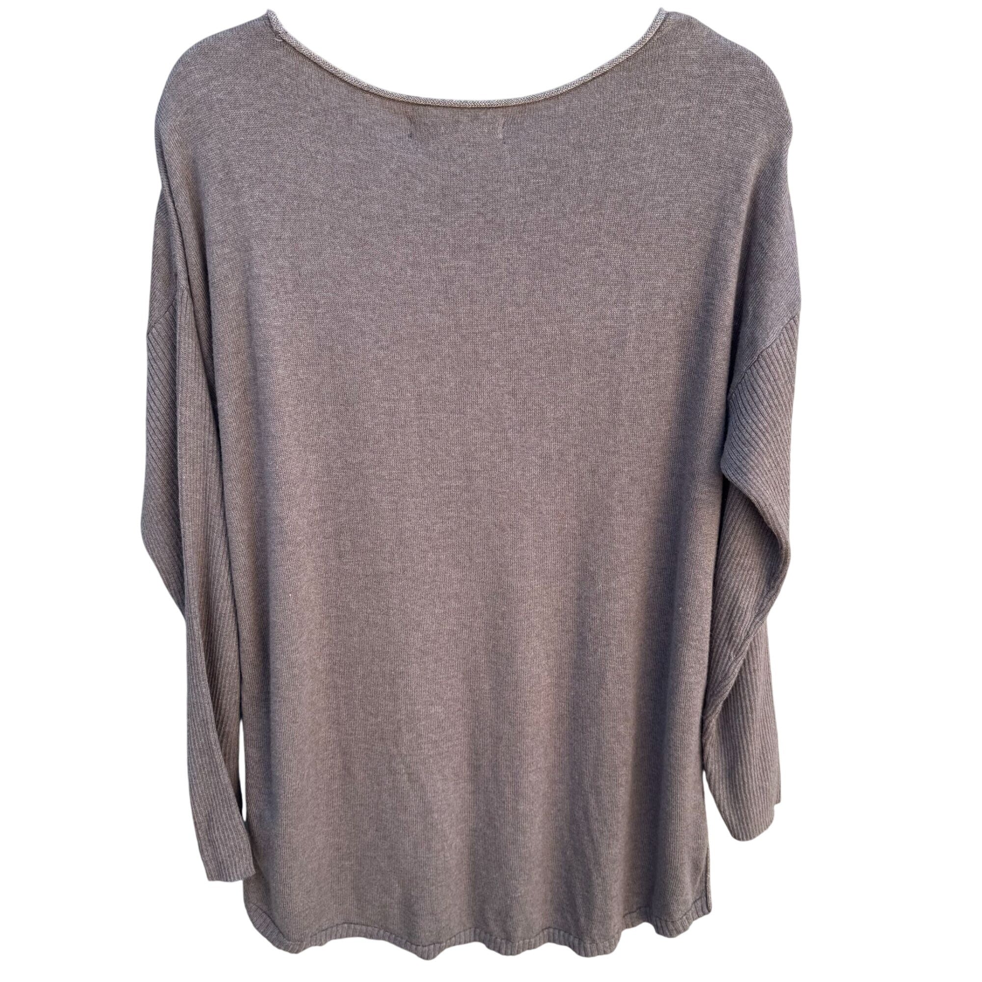 Apt 9 Brown Metallic Side Hem Boat Neck Long Sleeve Knit Sweater Top New Large