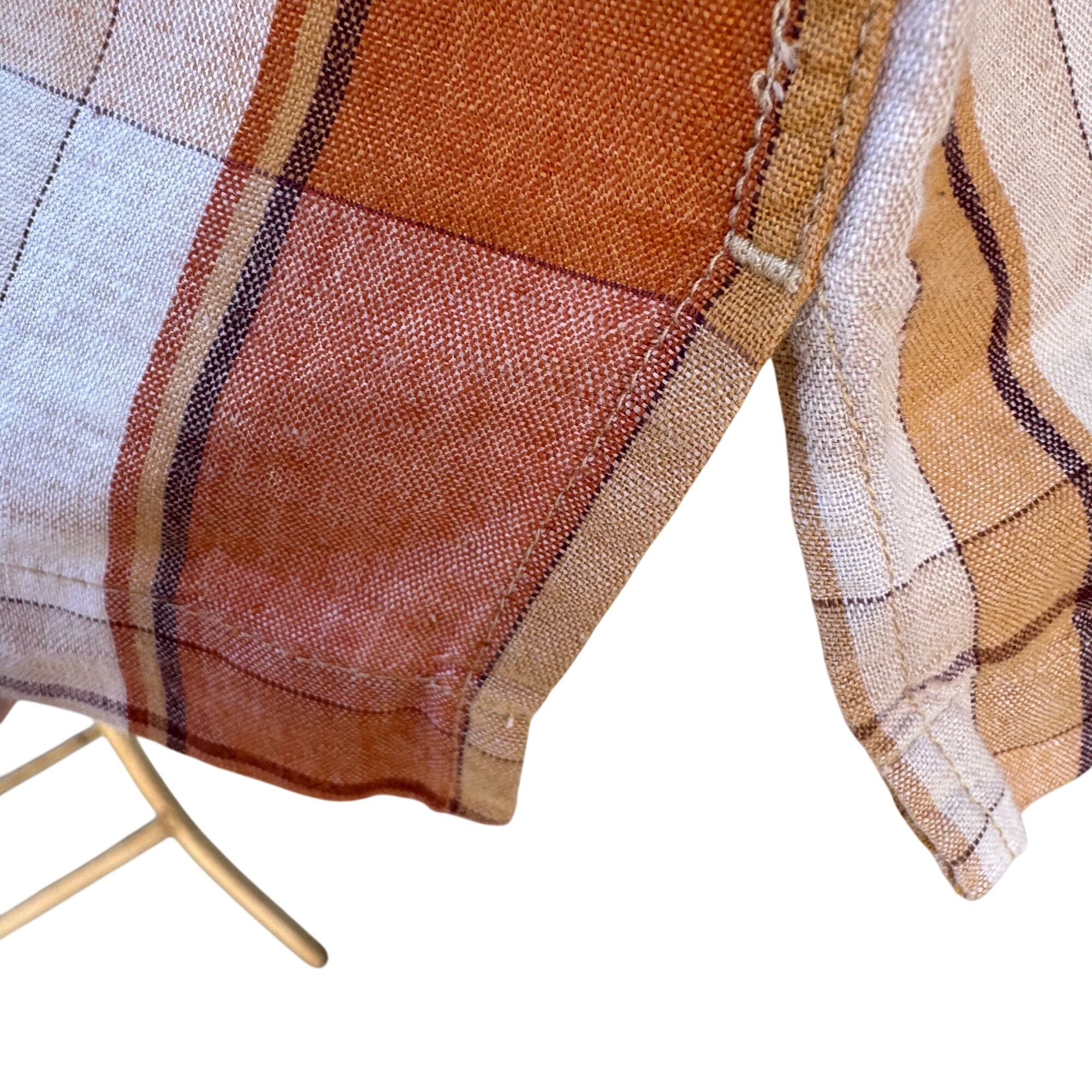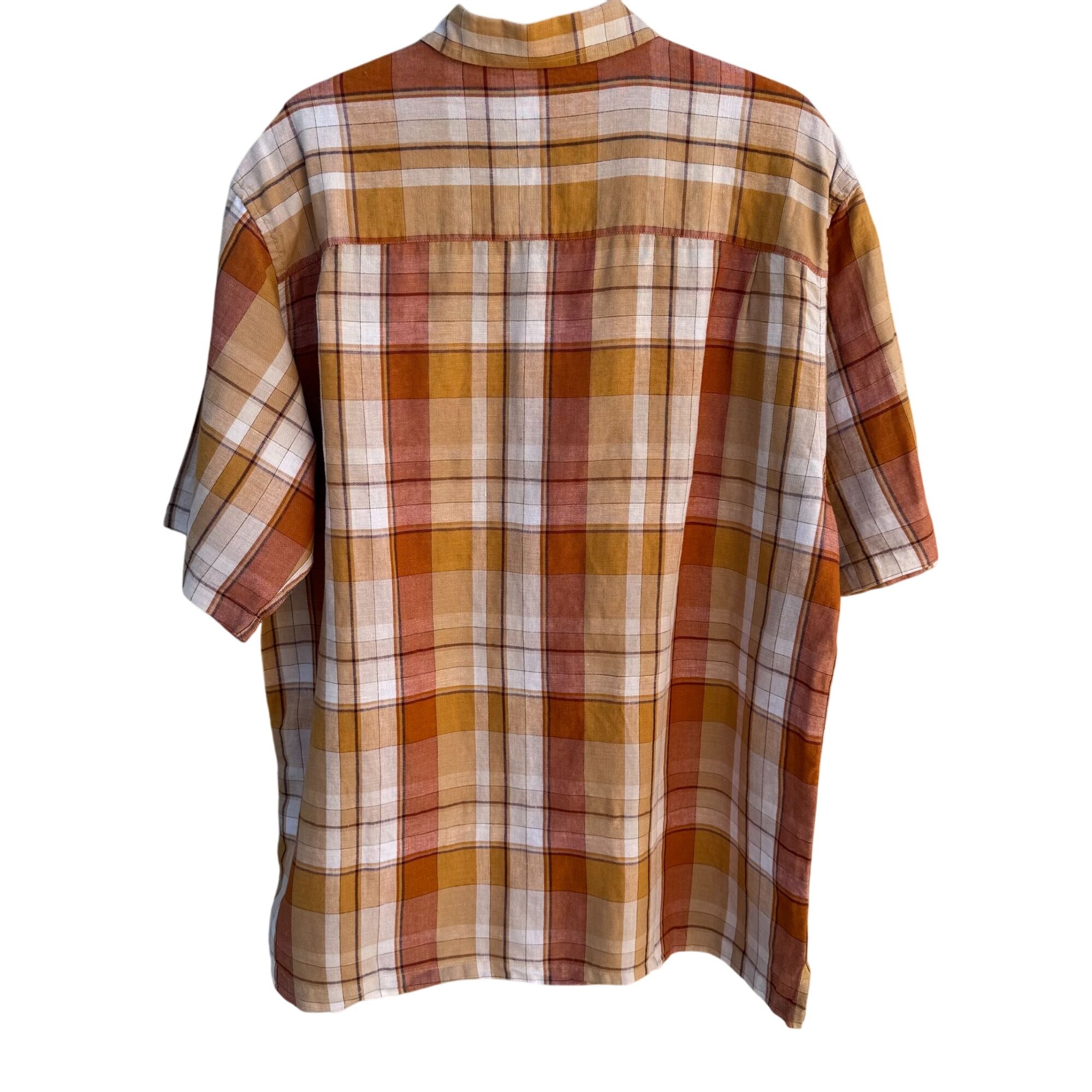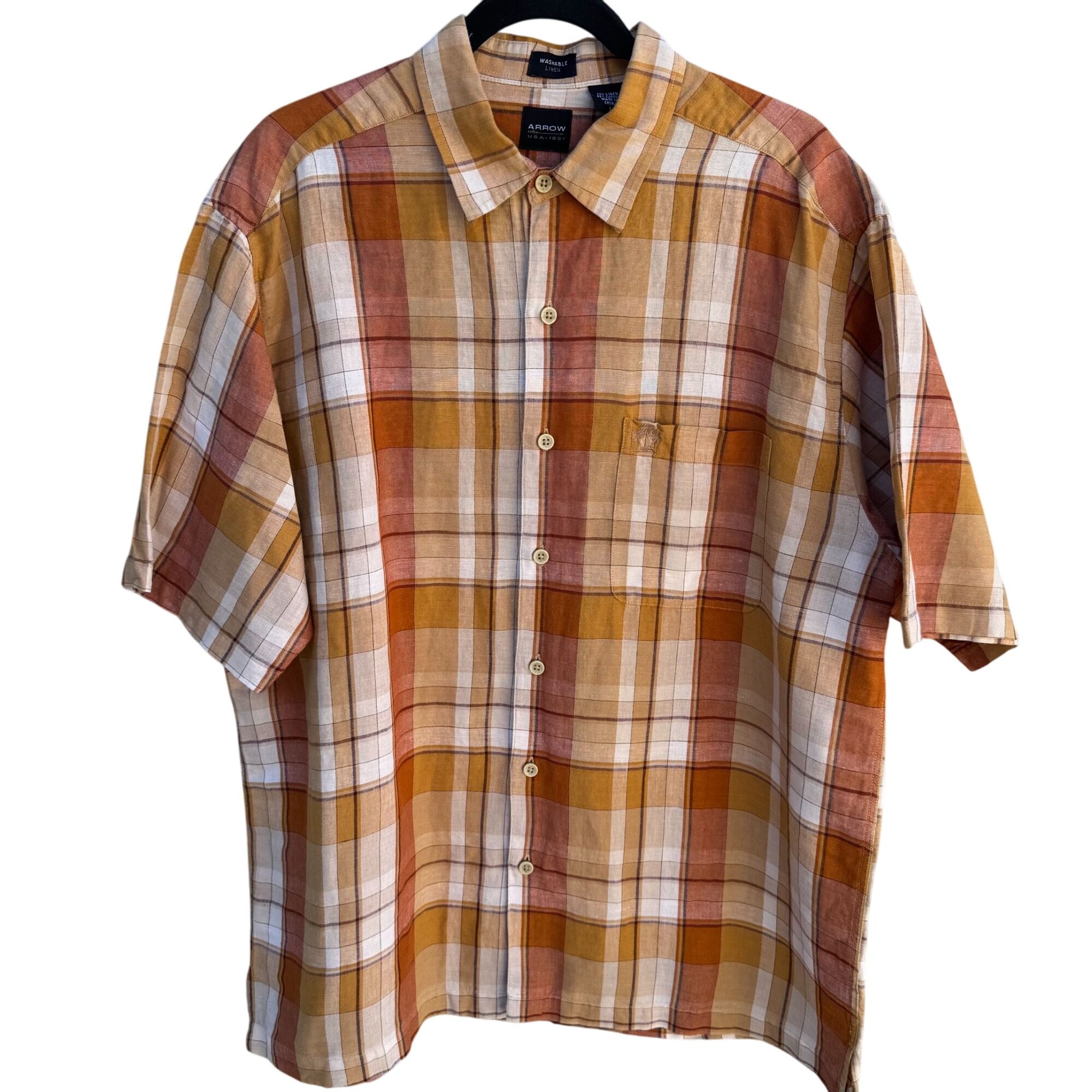 Arrow Mens Orange Plaid Linen Cotton Short Sleeve Button-Up Short Sleeve Shirt L