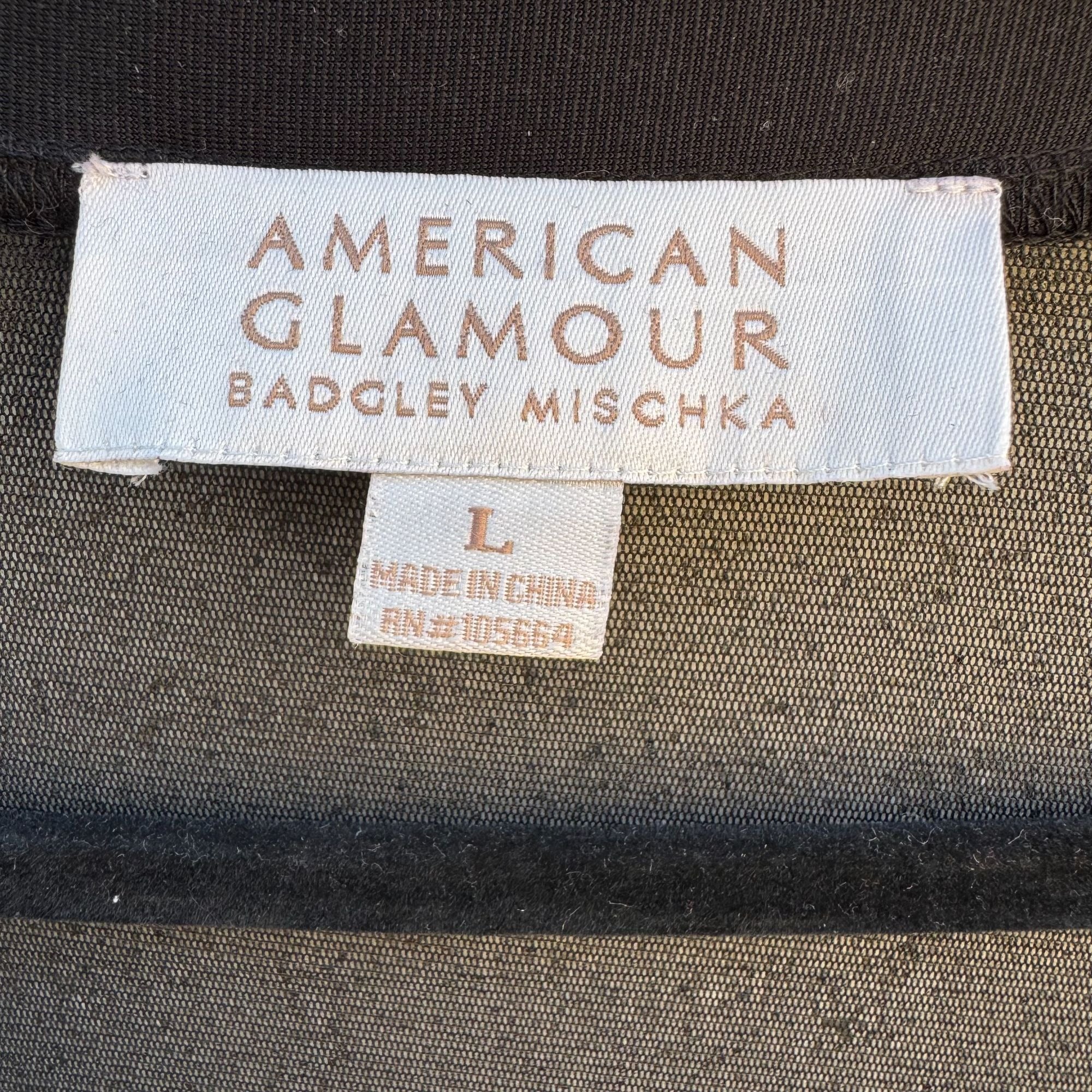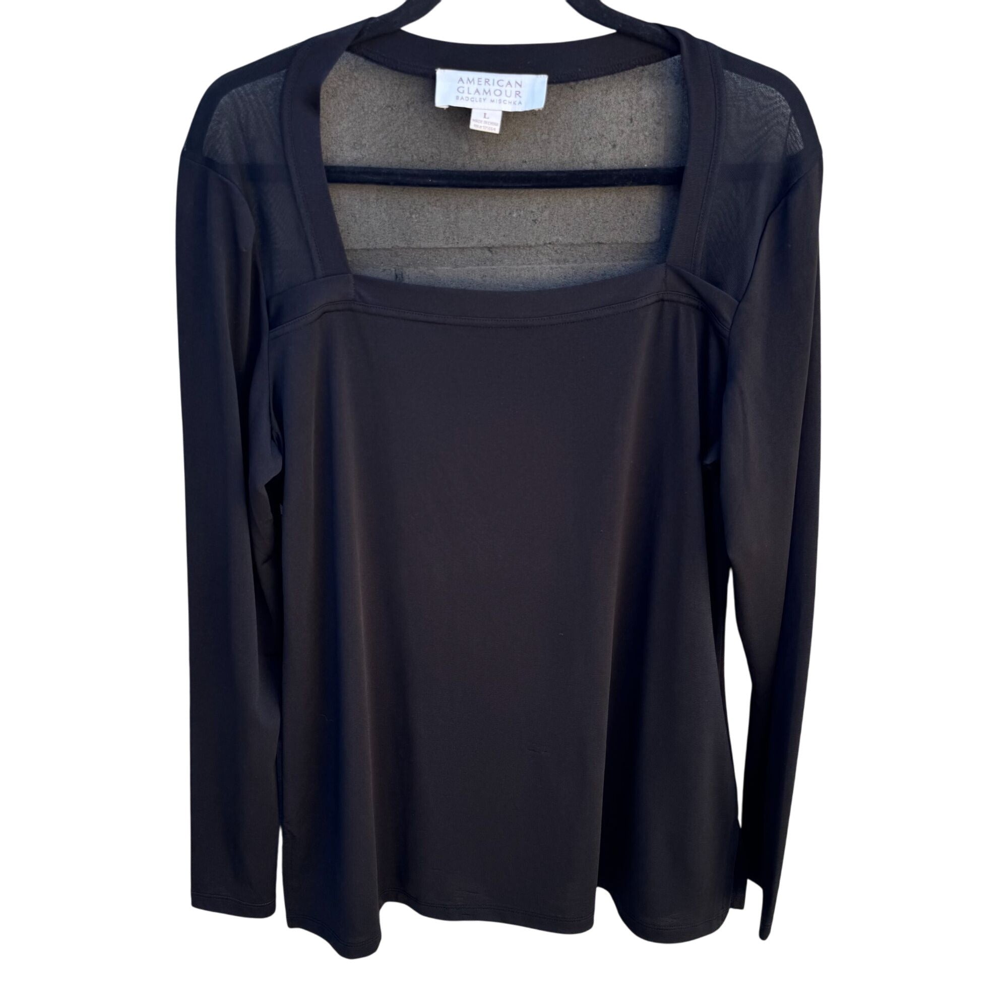 Badgley Mischka American Glamour Mesh Panel Square Neck Long Sleeve Top Black L