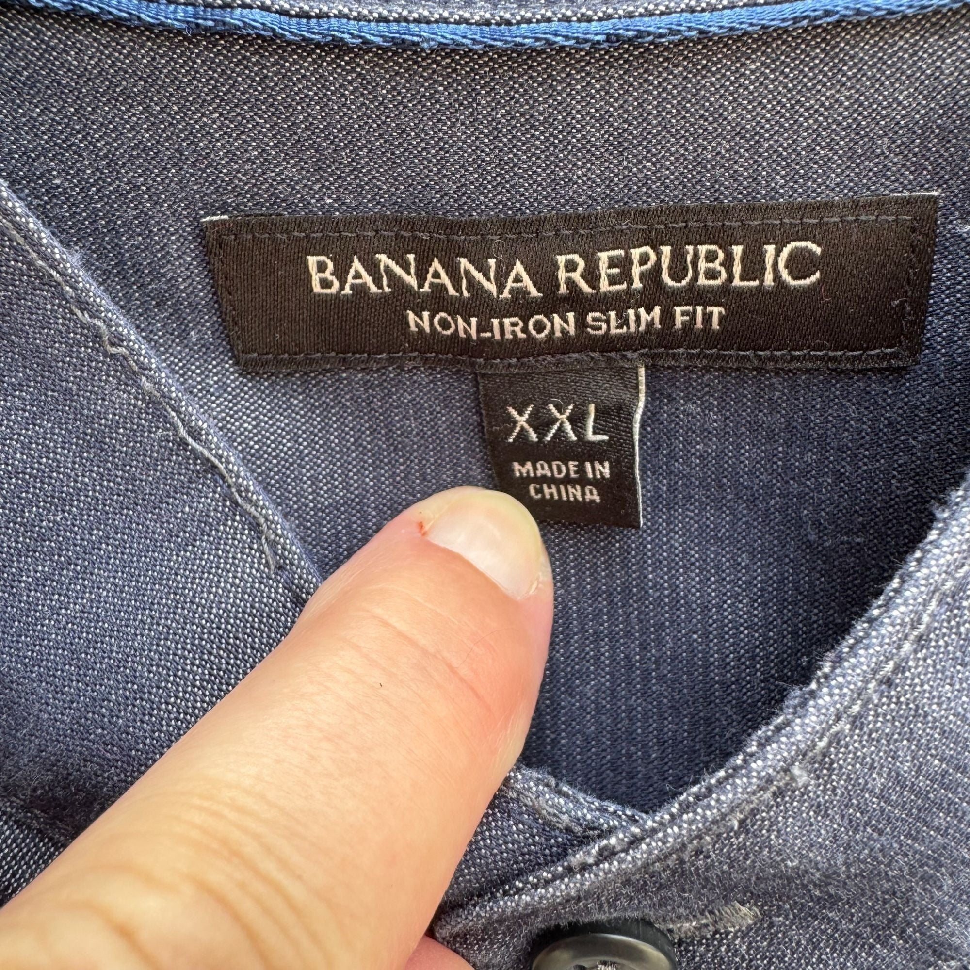 Banana Republic Non-Iron Slim Fit Mens Band Collar Blue Long Sleeve Dress Shirt XXL