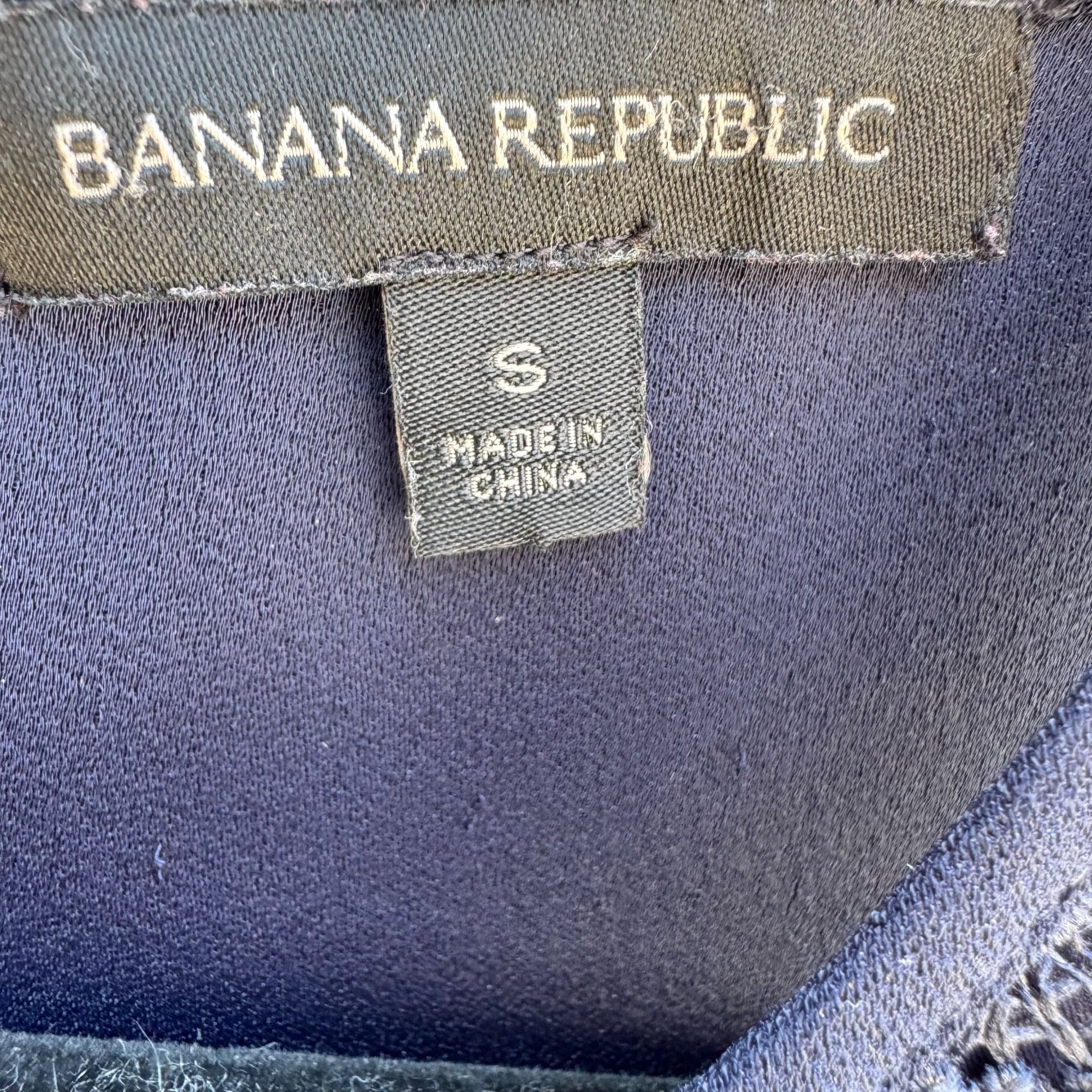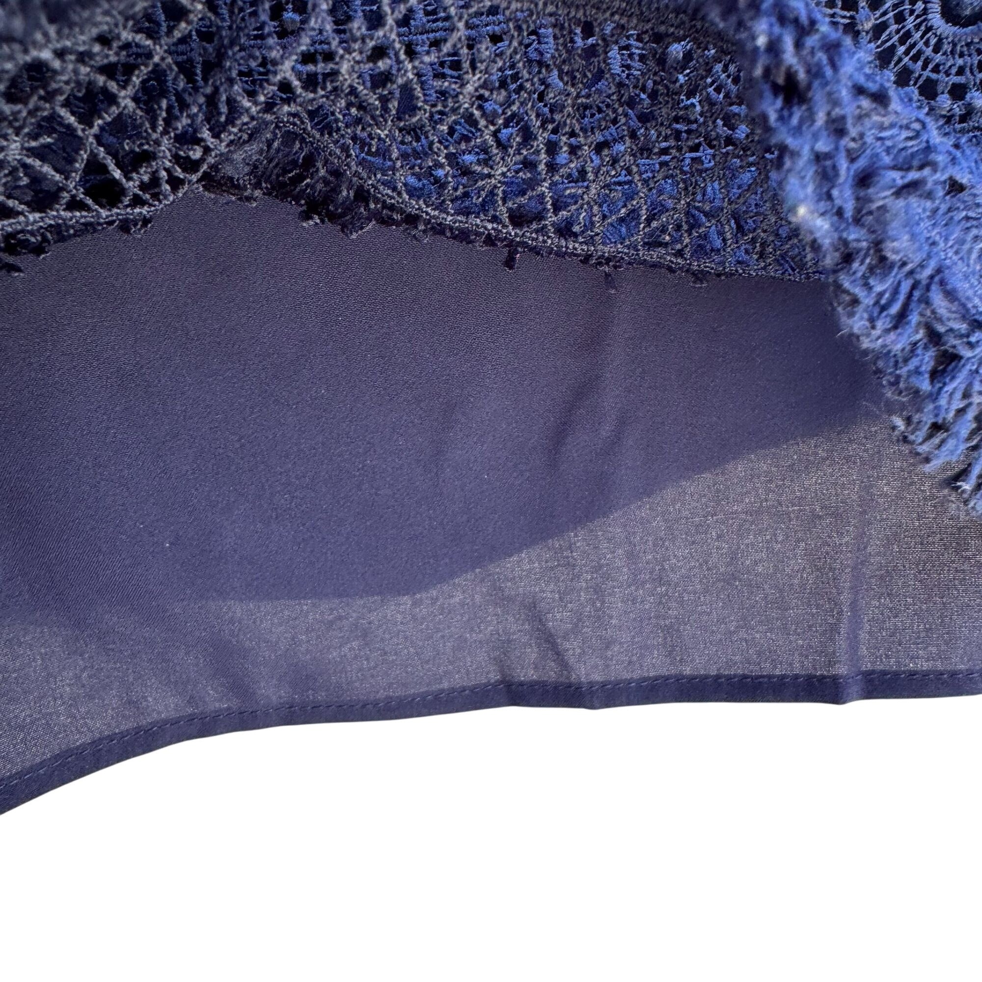 Banana Republic Womens Navy Sleeveless Lace Crochet Fringe Overlay Blouse Top S