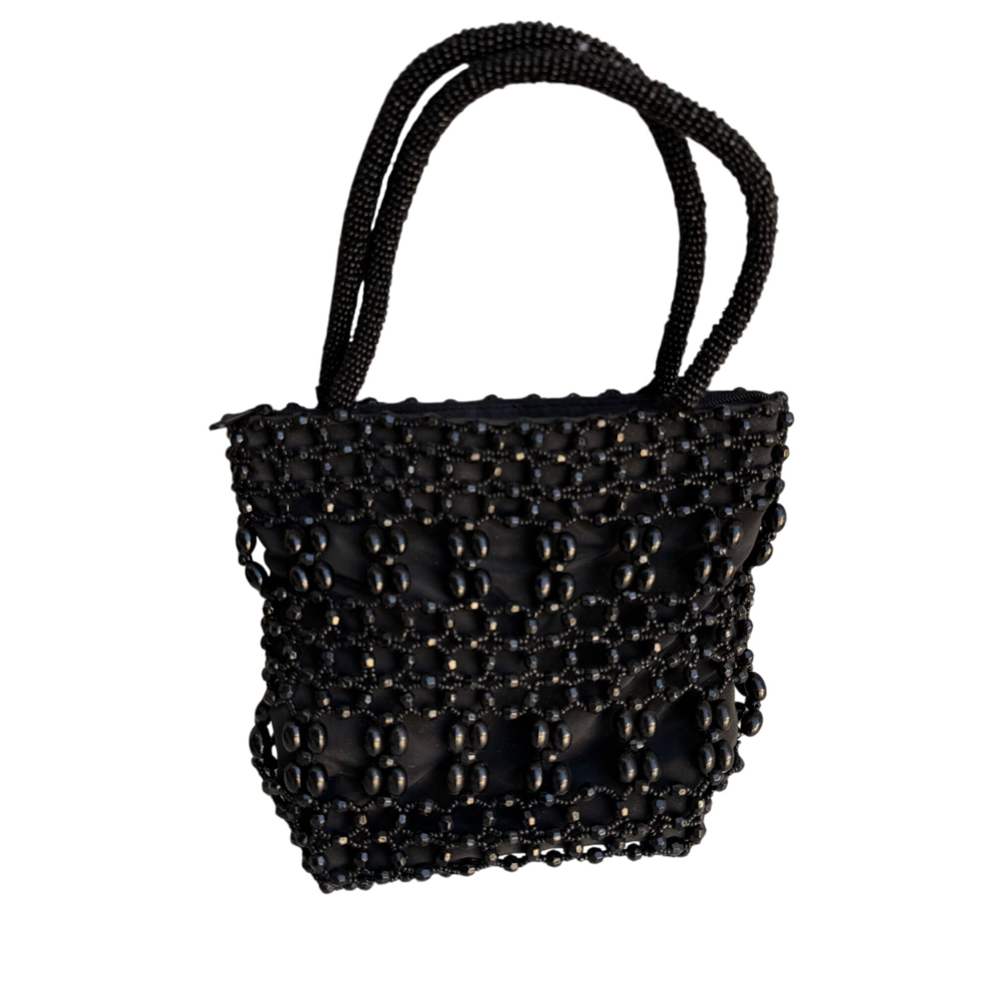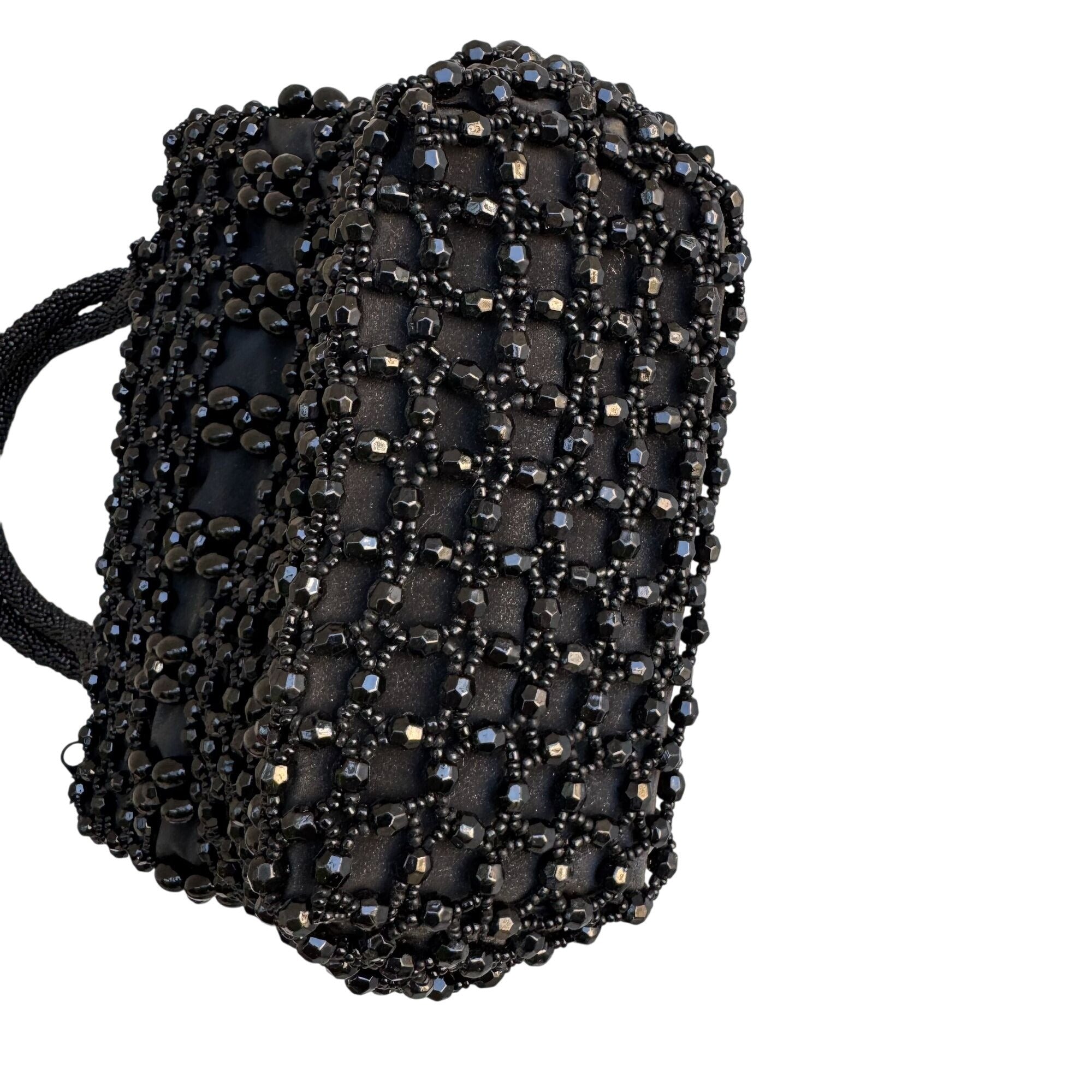 Black Beaded Double Handles & Zipper Closure Miniature Bag Formal Evening Bag