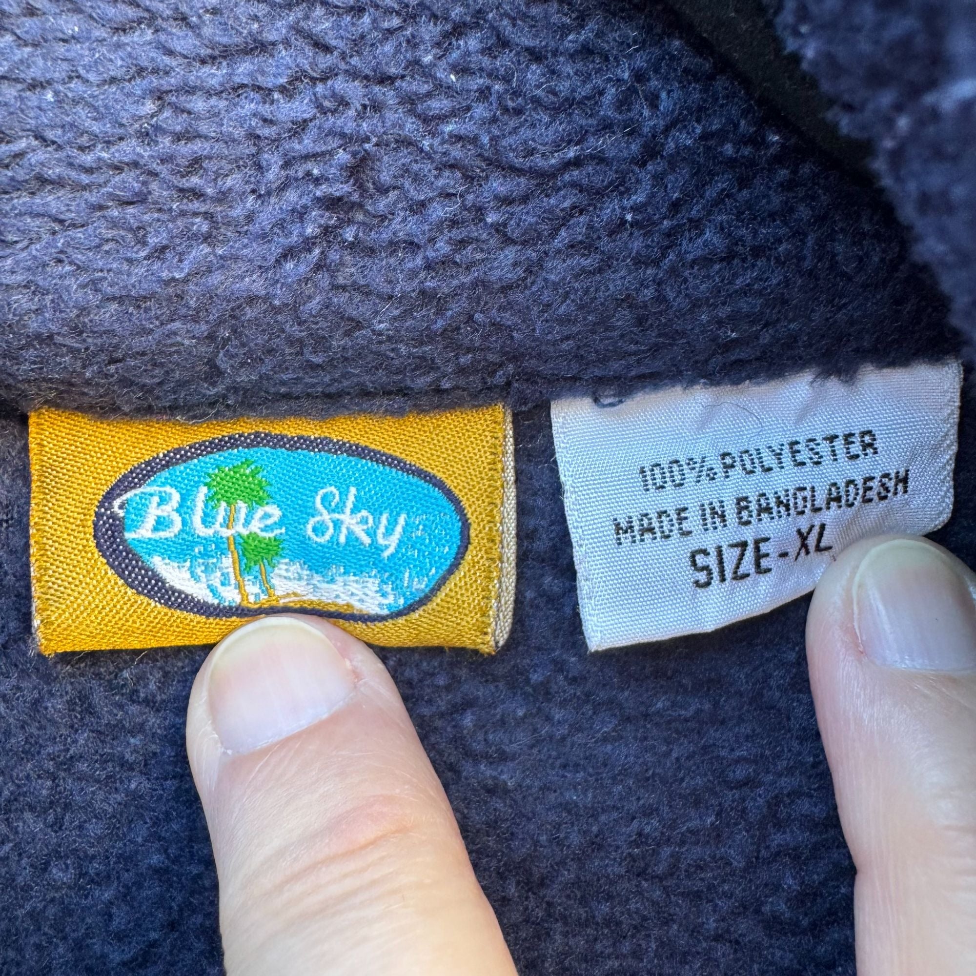 Blue Sky Navy 1/4 Zip Pullover Fleece Sweater XL Cozy Pocket Relaxed Fit Unisex