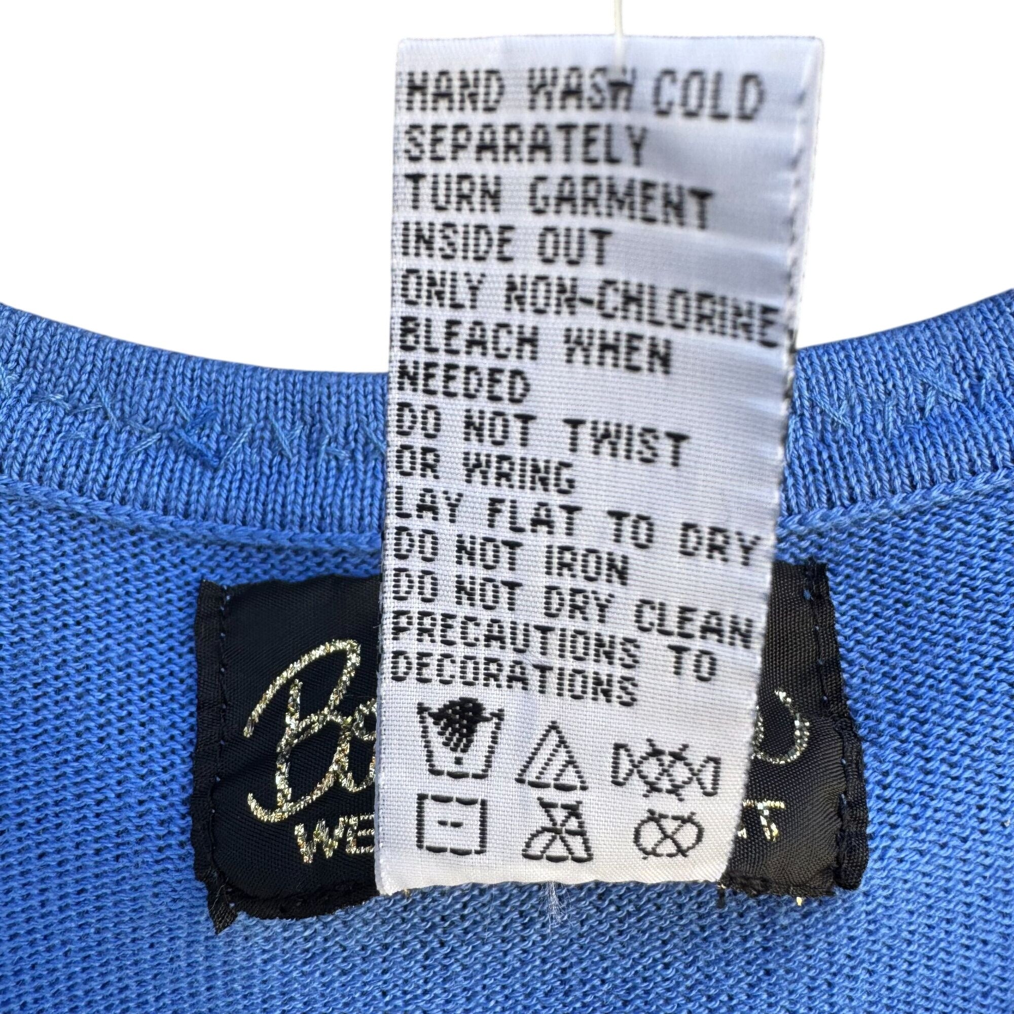Bob Mackie Wearable Art Blue Beaded Dragonfly Design Knit Cardigan Sweater New S