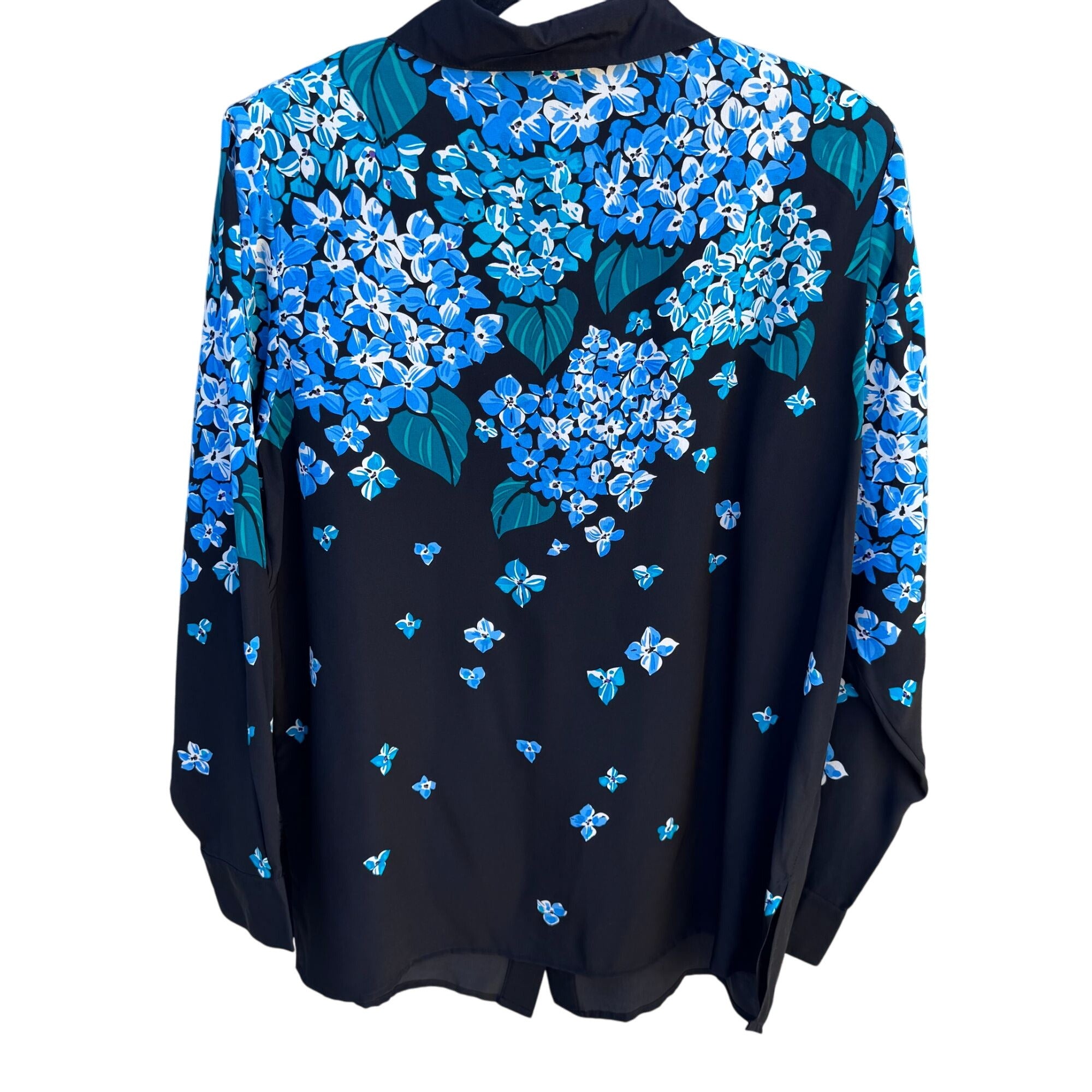 Bob Mackie Wearable Art Silk Hydrangea Beaded Floral Button Down Shirt New M