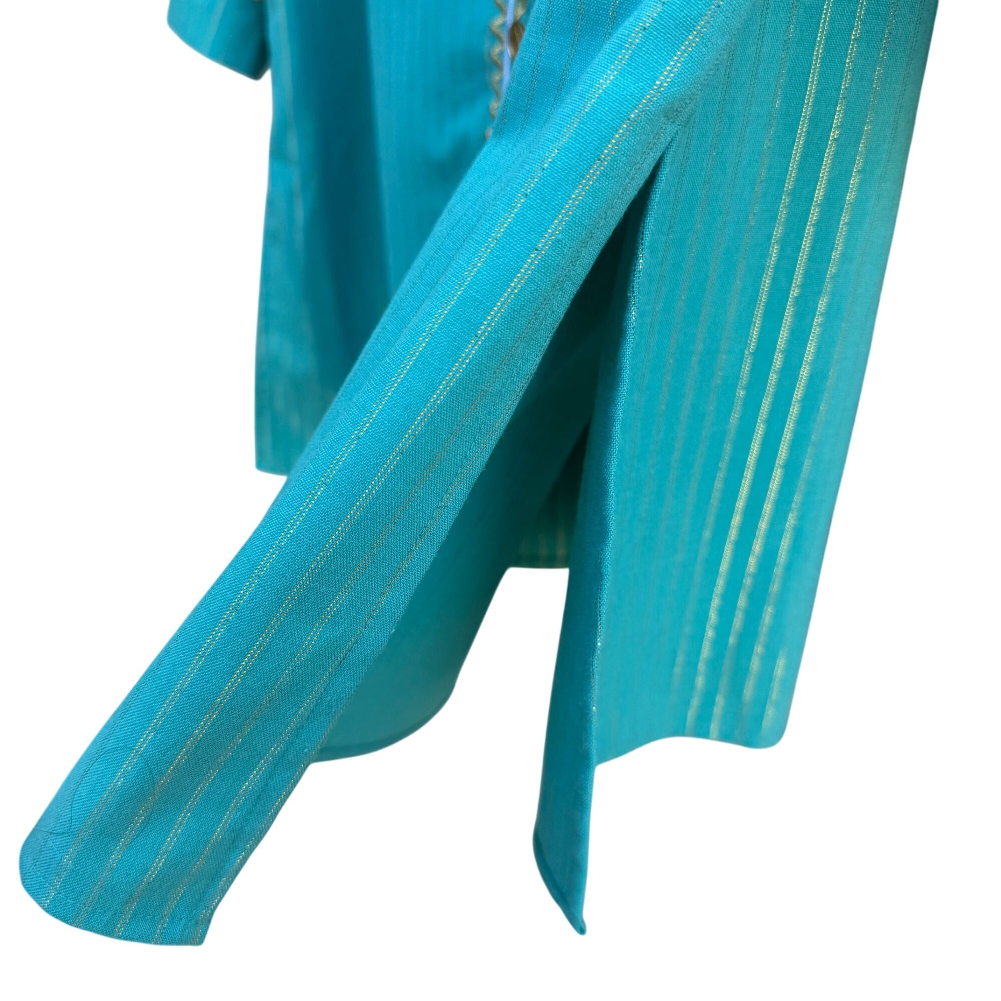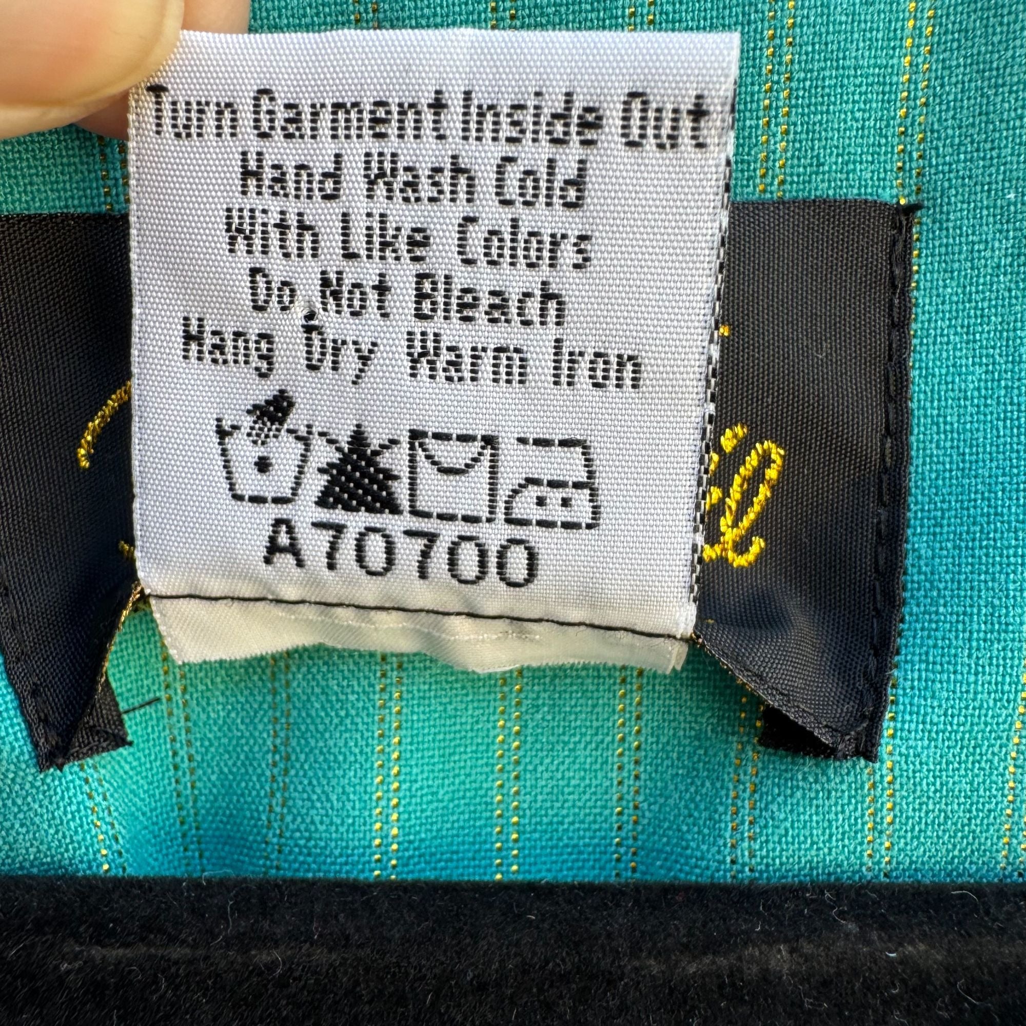 Bob Mackie Wearable Art Vintage Green Gold Striped Embroidered Tunic Blouse M