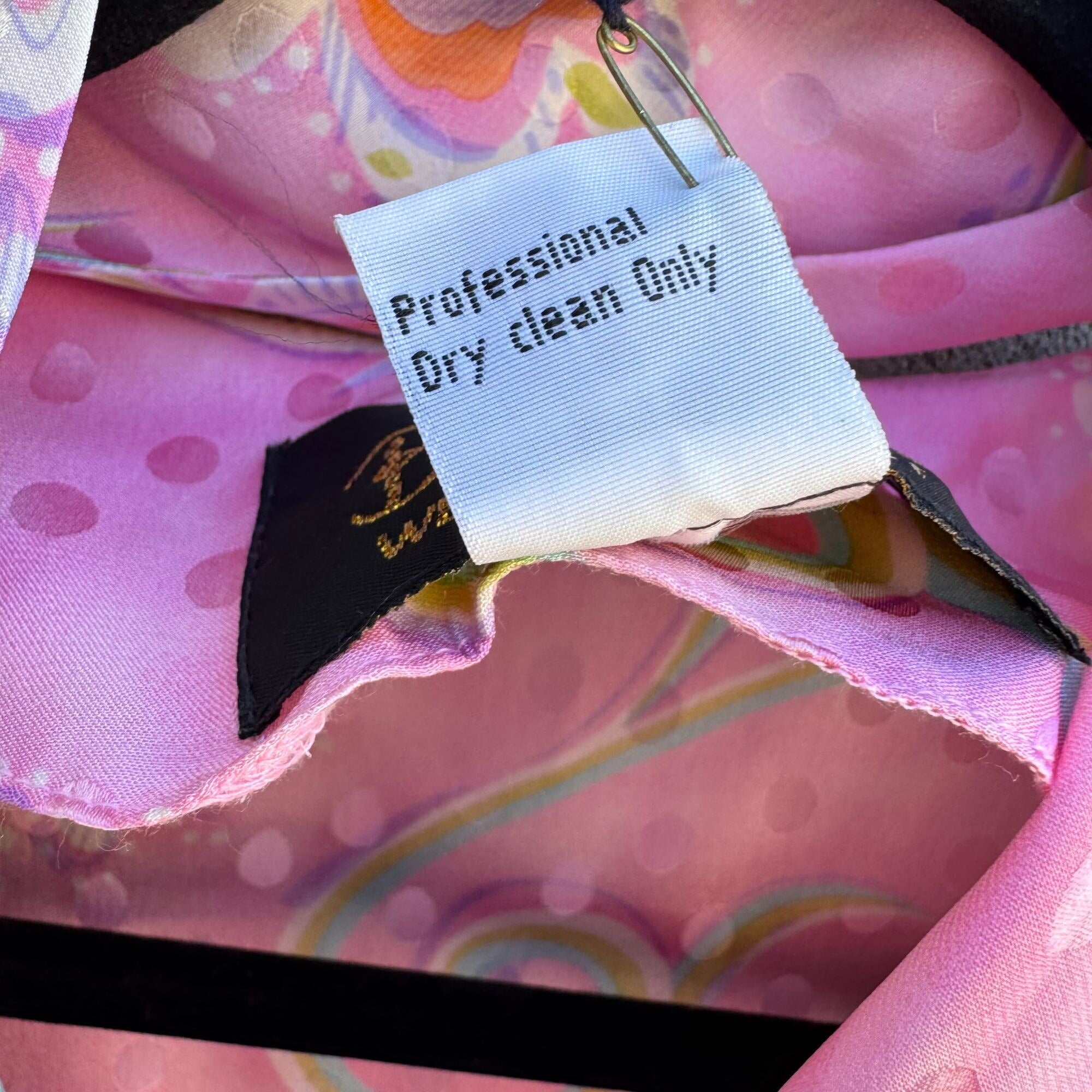 Bob Mackie Wearable Art Vintage Pink Paisley Silk Long Sleeve Tie Neck Blouse S