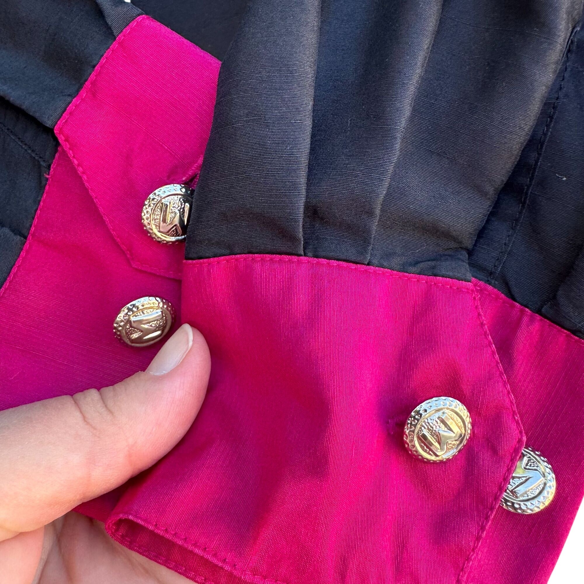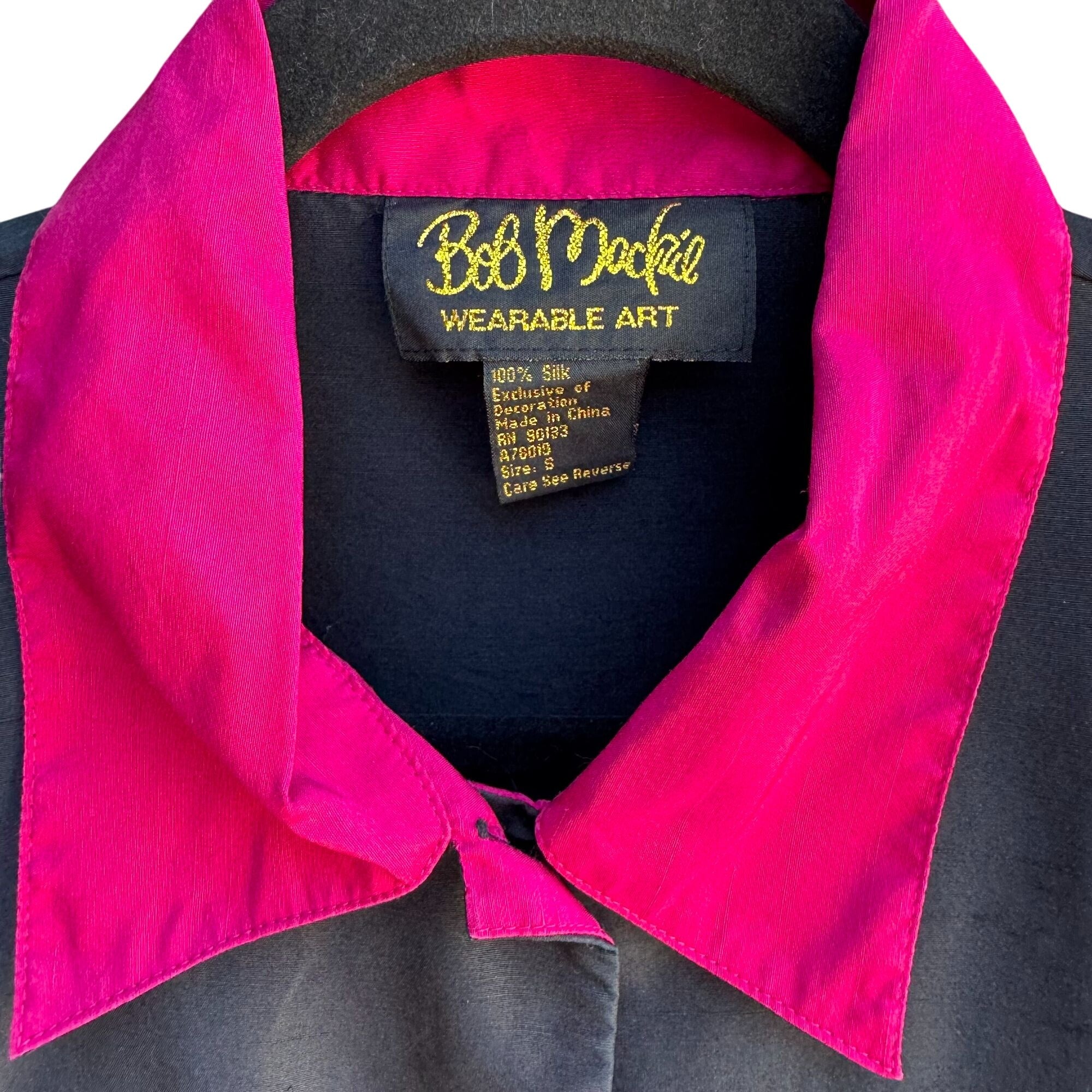 Bob Mackie Wearable Art Vintage Silk Embroidered Butterfly Appliqué Shirt Blouse