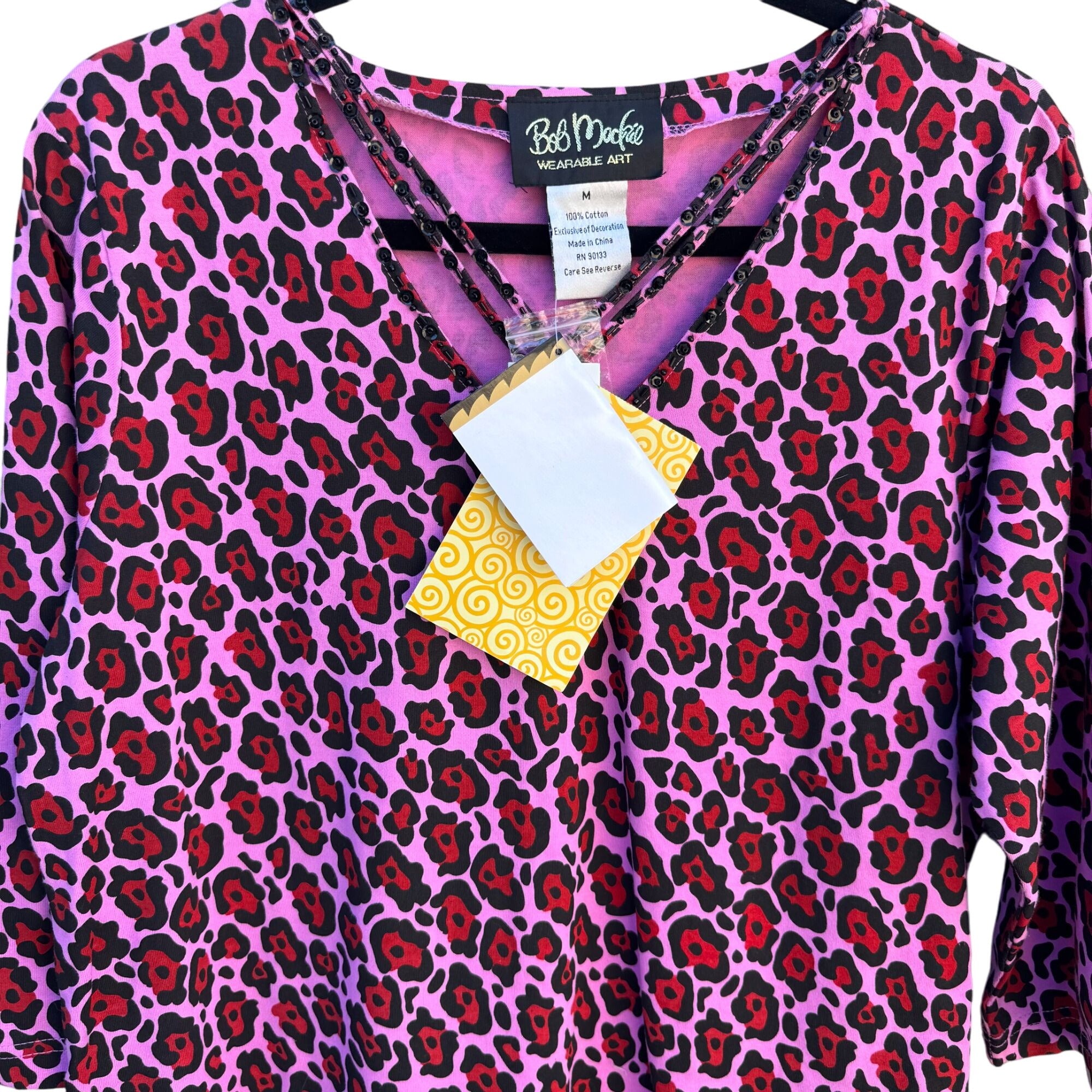 Bob Mackie Wearable Art Vintage Womens Pink Black Leopard Print Tunic Dress New