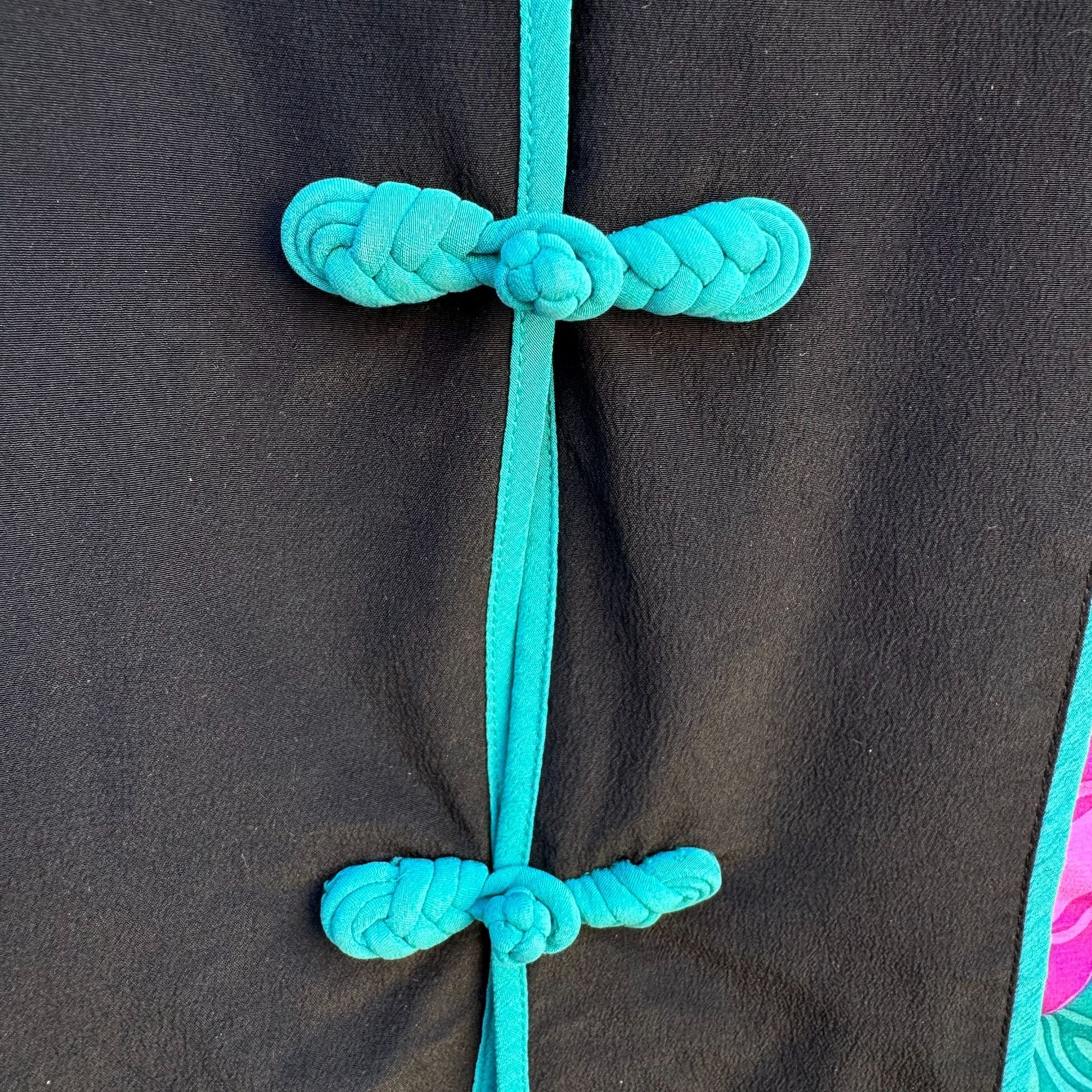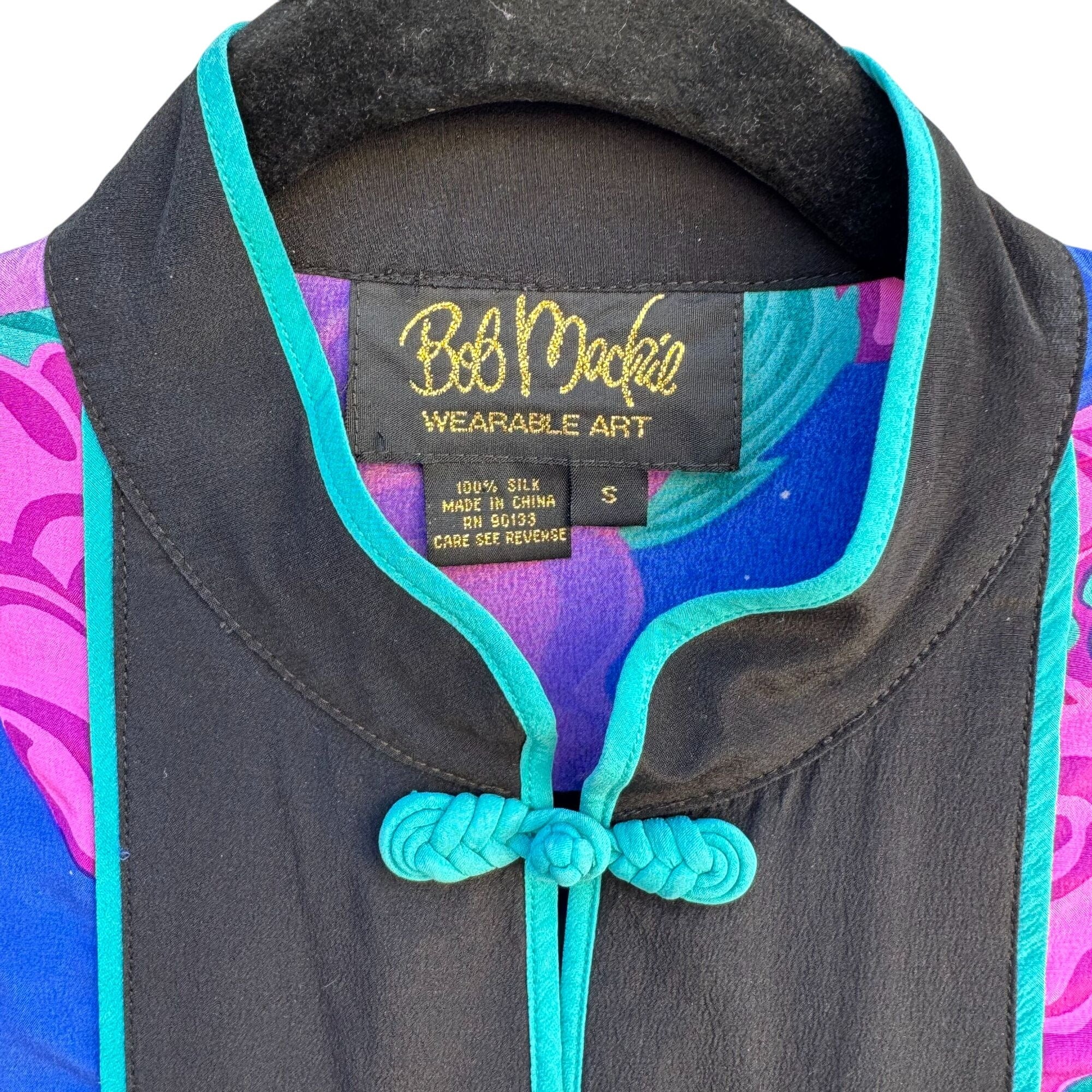 Bob Mackie Wearable Art Vintage Womens Silk Floral Frog Closure Kimono Jacket S