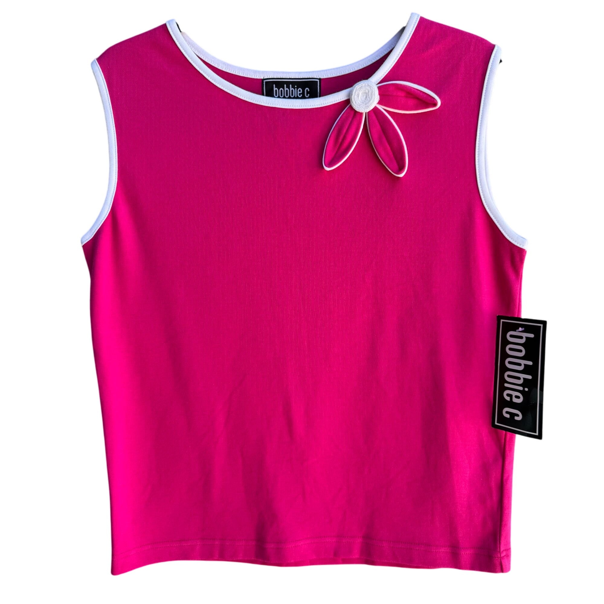 Bobbie C Womens Pink Sleeveless White Trim Flower Detail Top New With Tags M