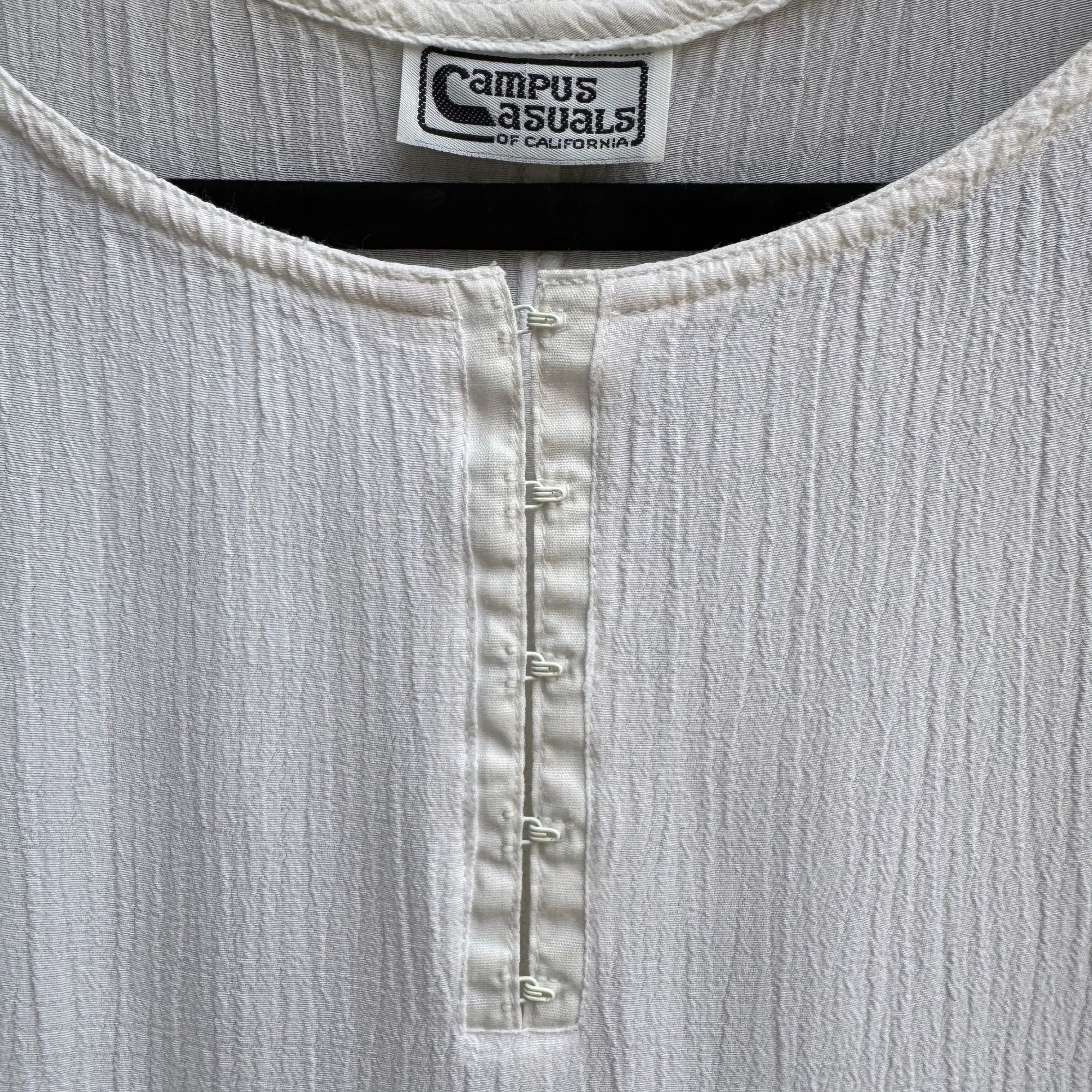 Campus Casuals Of California Vintage Womens White Crinkle Short Sleeve Blouse