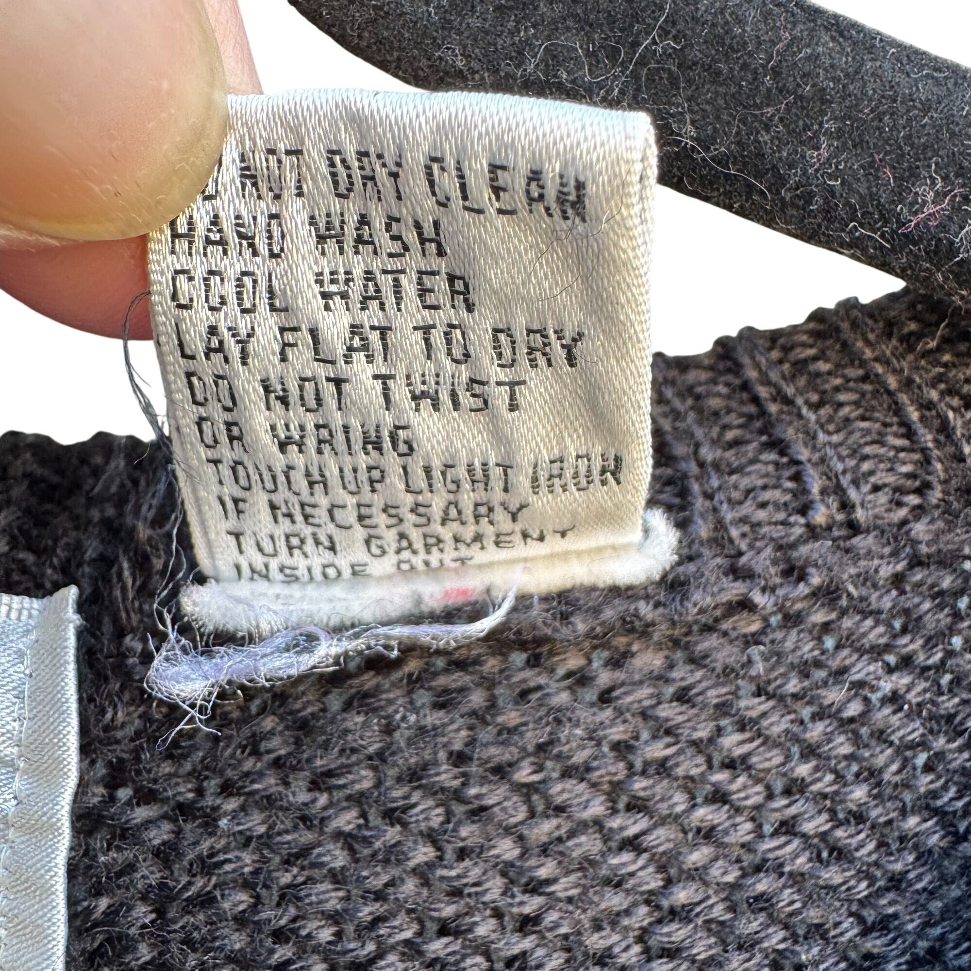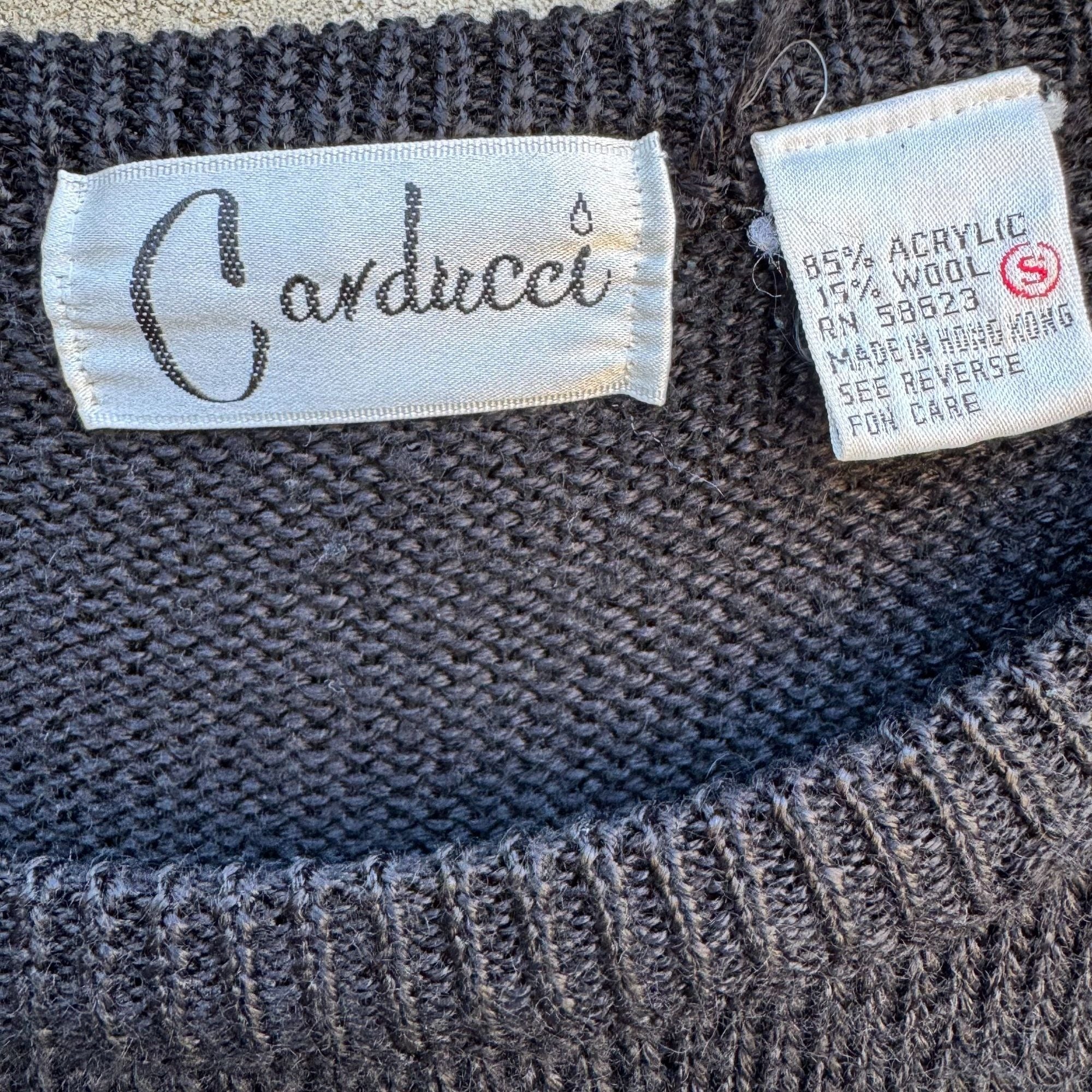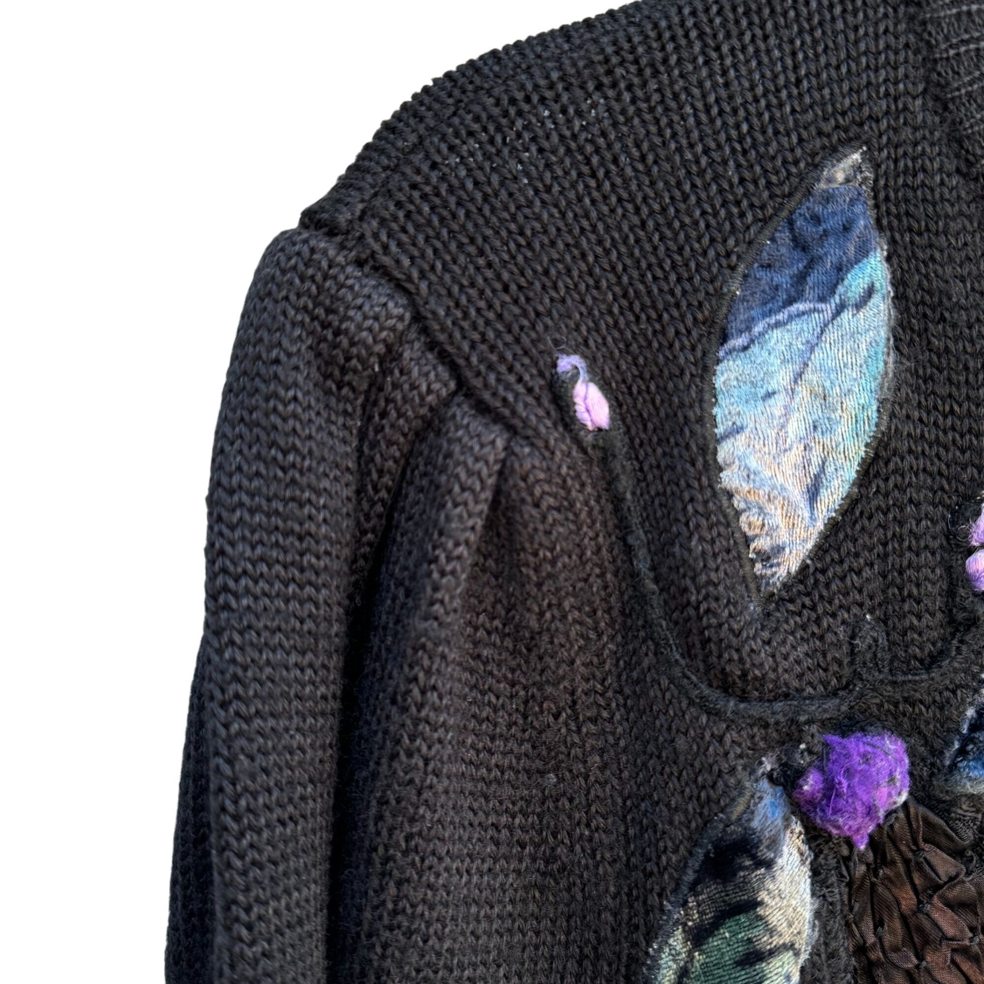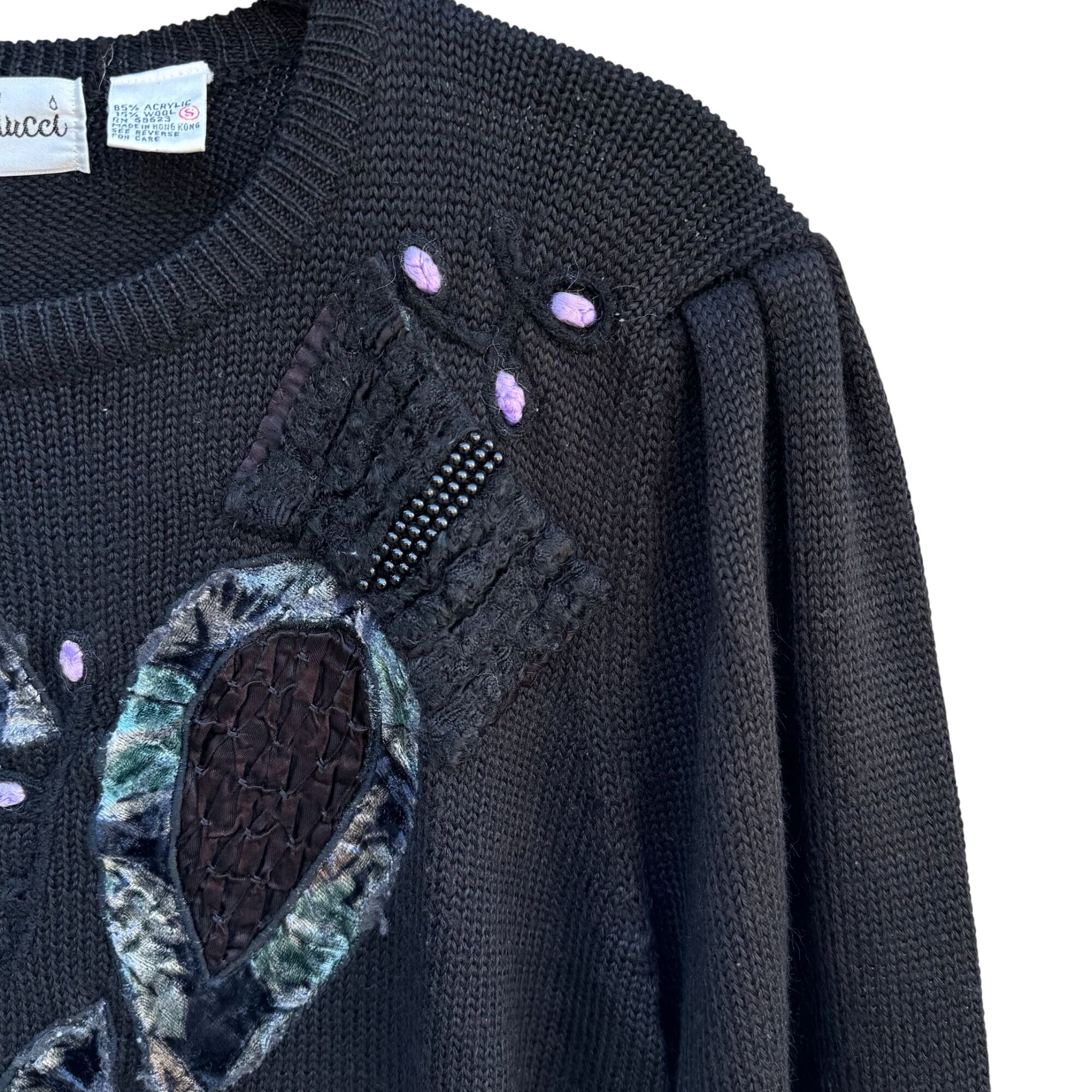 Carducci Vintage Womens Black Knit Embroidered Appliqué Pleated Sleeve Sweater S