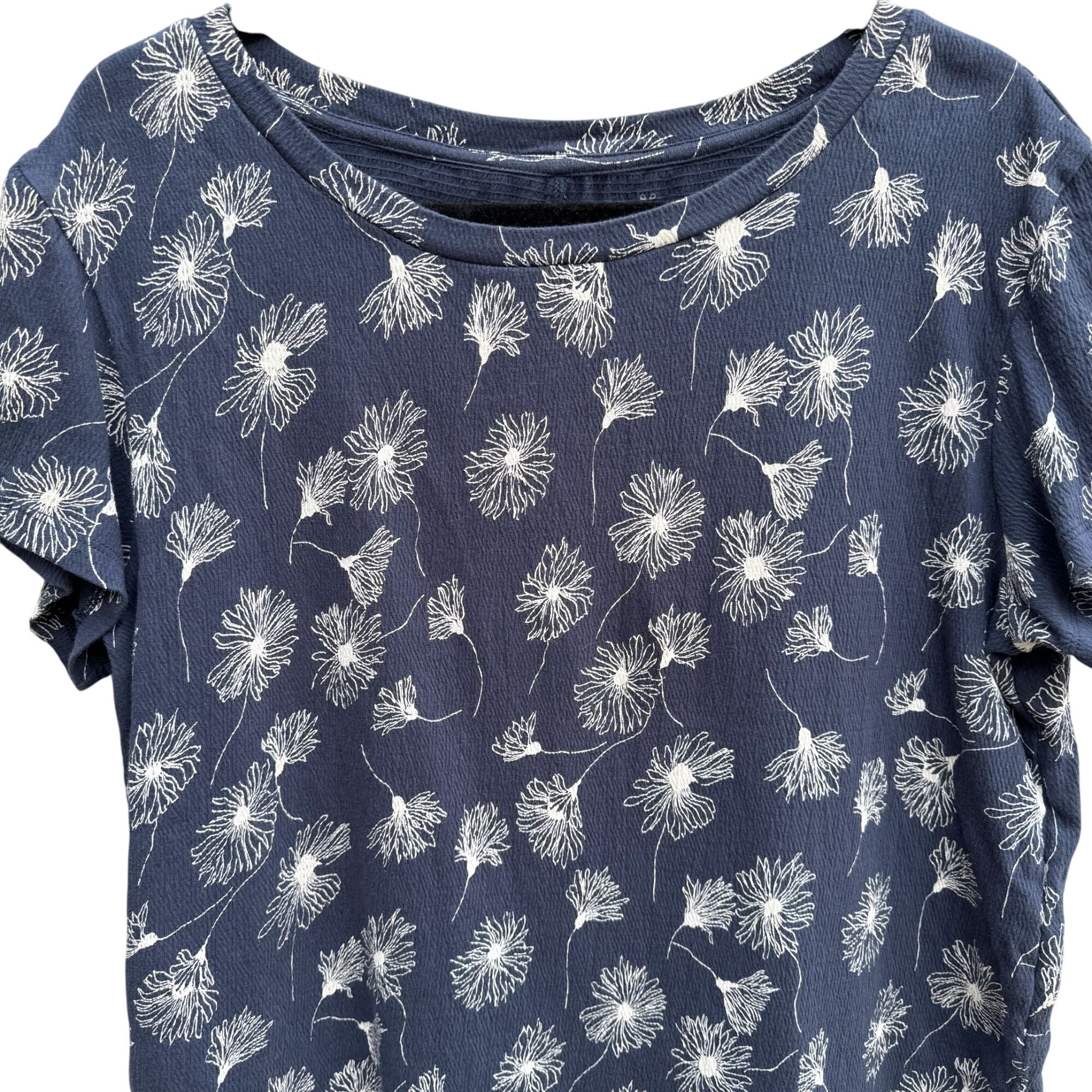 Caslon Womens Navy Short Sleeve Waffle Knit Boat Neck Floral Print Blouse Top S