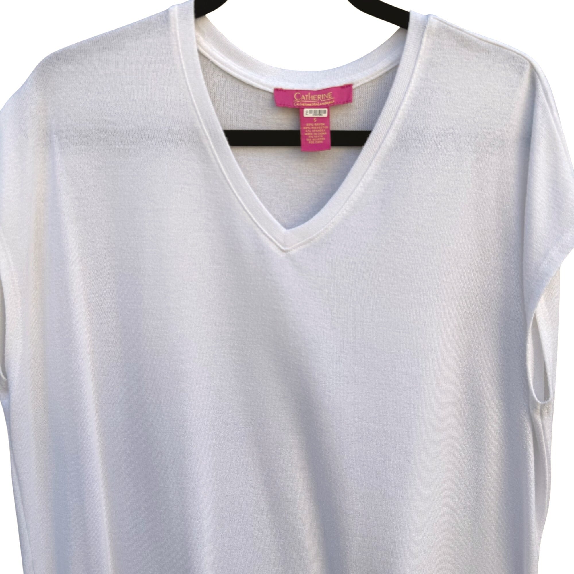 Catherine Malandrino Womens V-Neck White Knit Oversized Minimalist Boxy Tunic S
