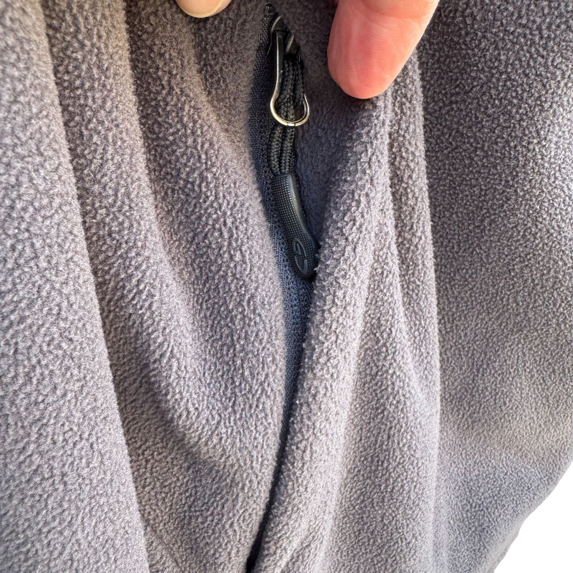 This fleece jacket is like a warm hug from a cloud, except it zips up and has pockets. Stylishly gray, it's your versatile cozy companion.