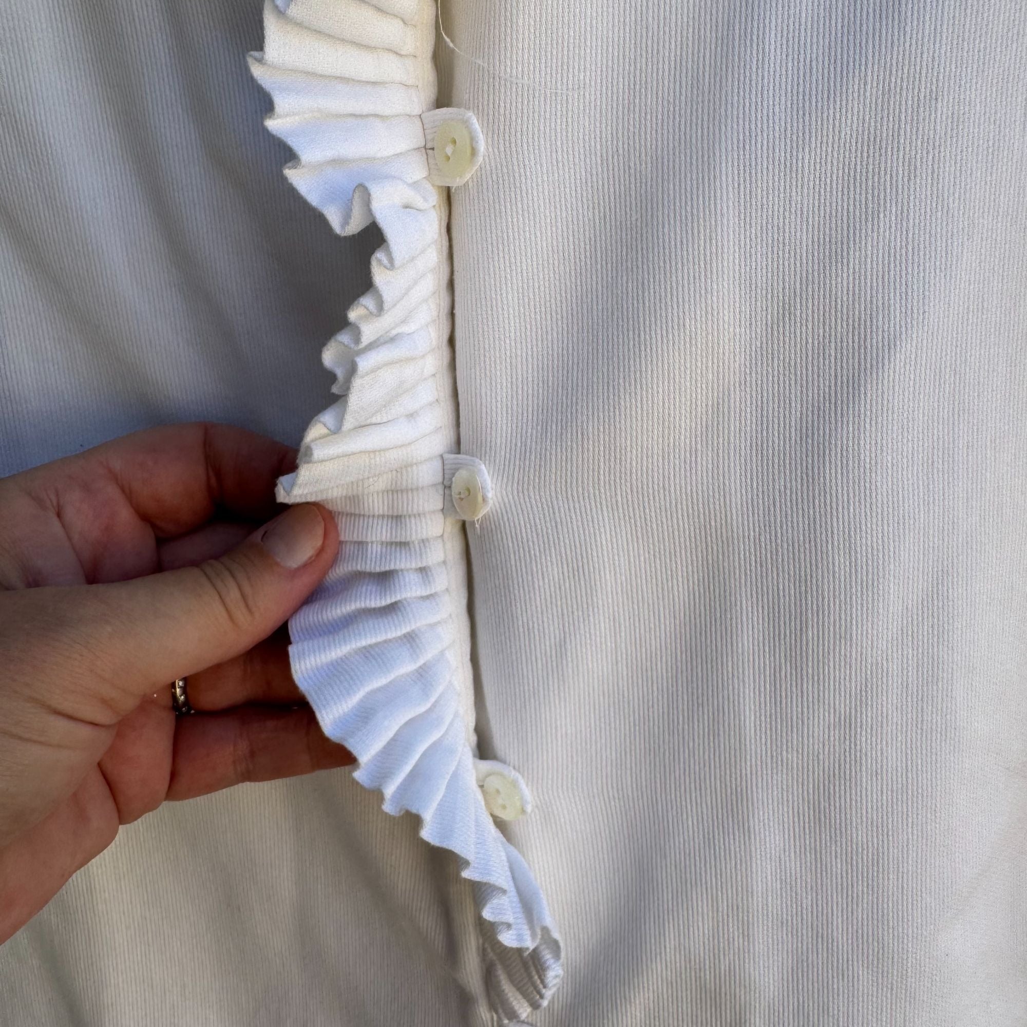 • Ruffle trim on collar and cuffs