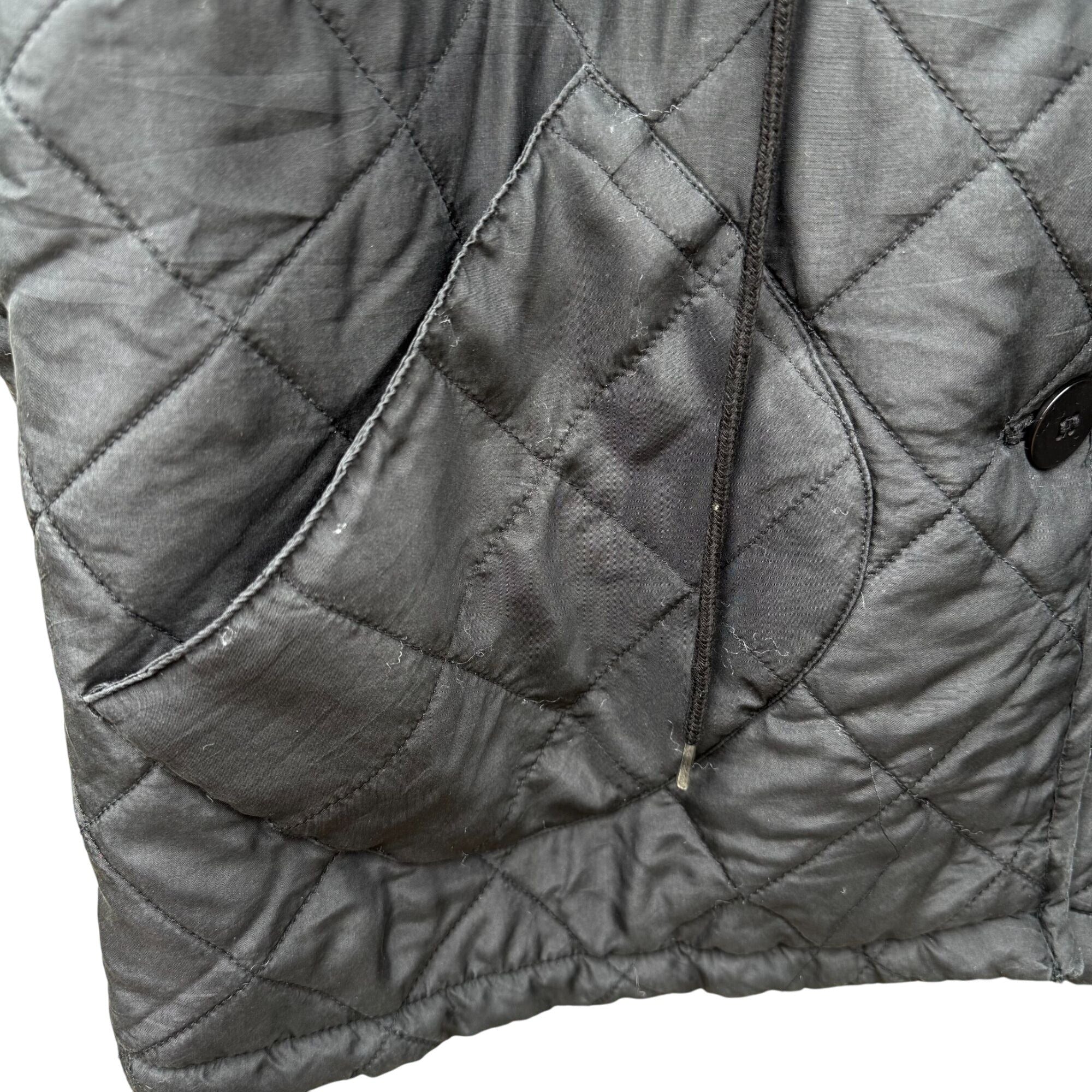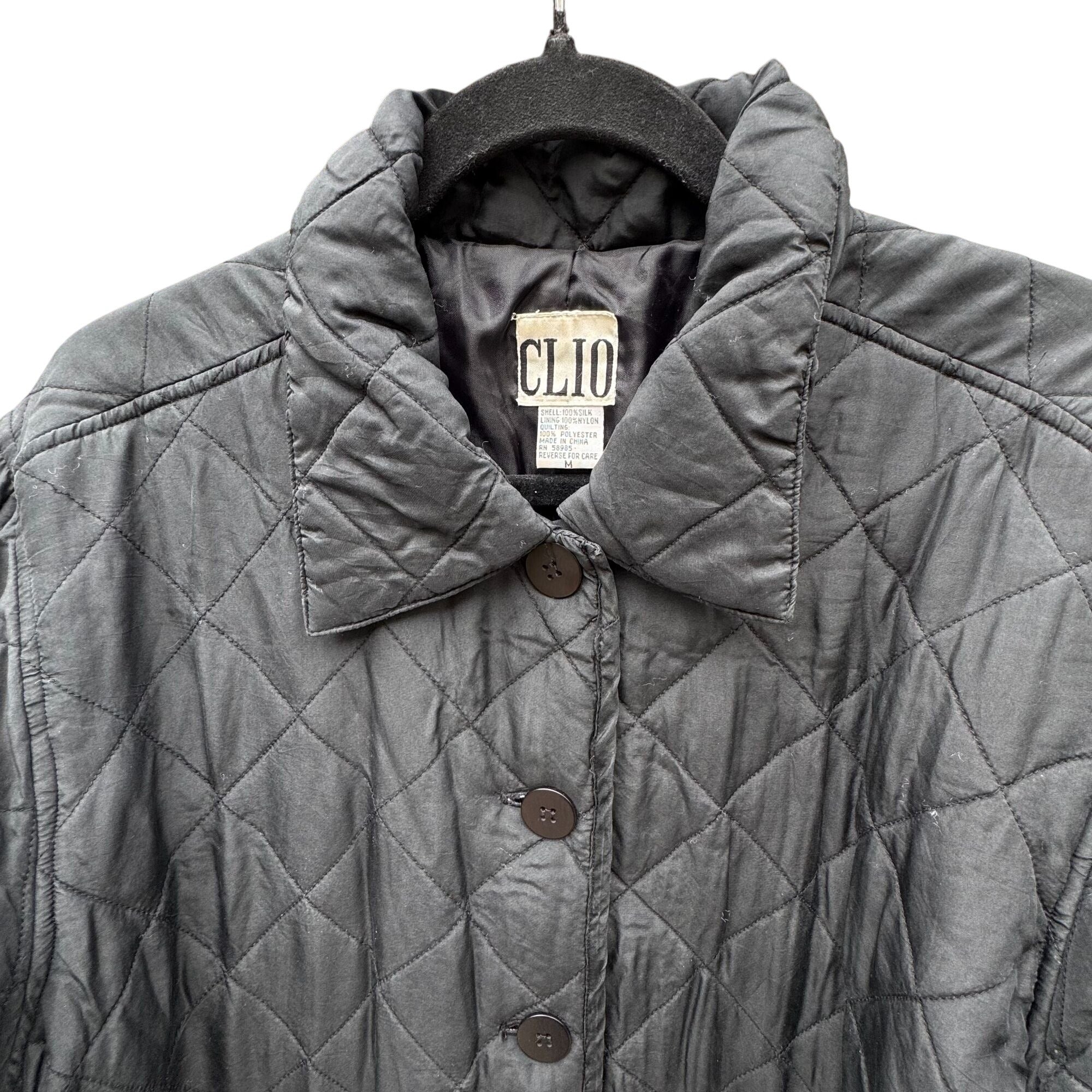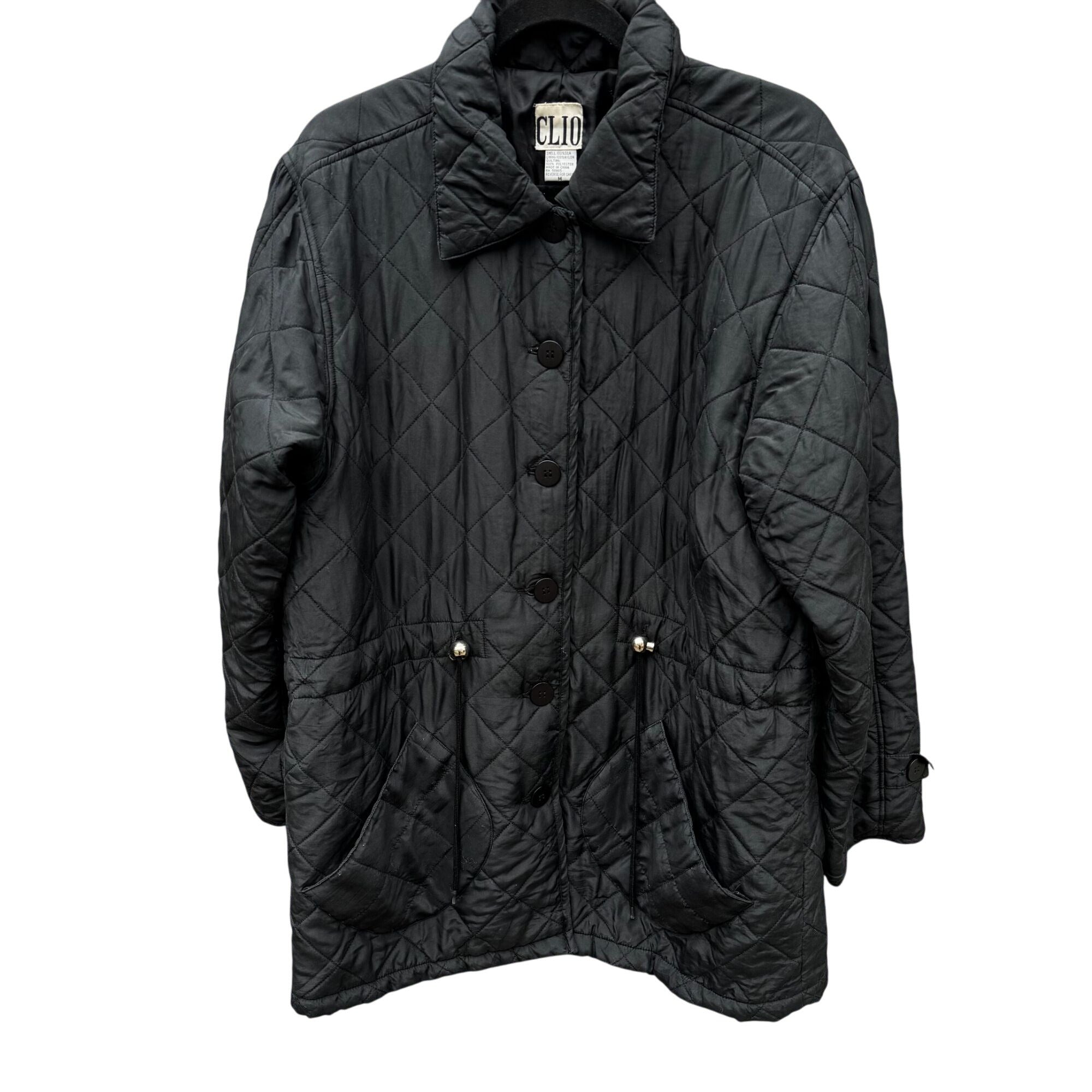 Clio Vintage Womens Black Quilted Jacket Button Front Pockets Drawstring Waist M