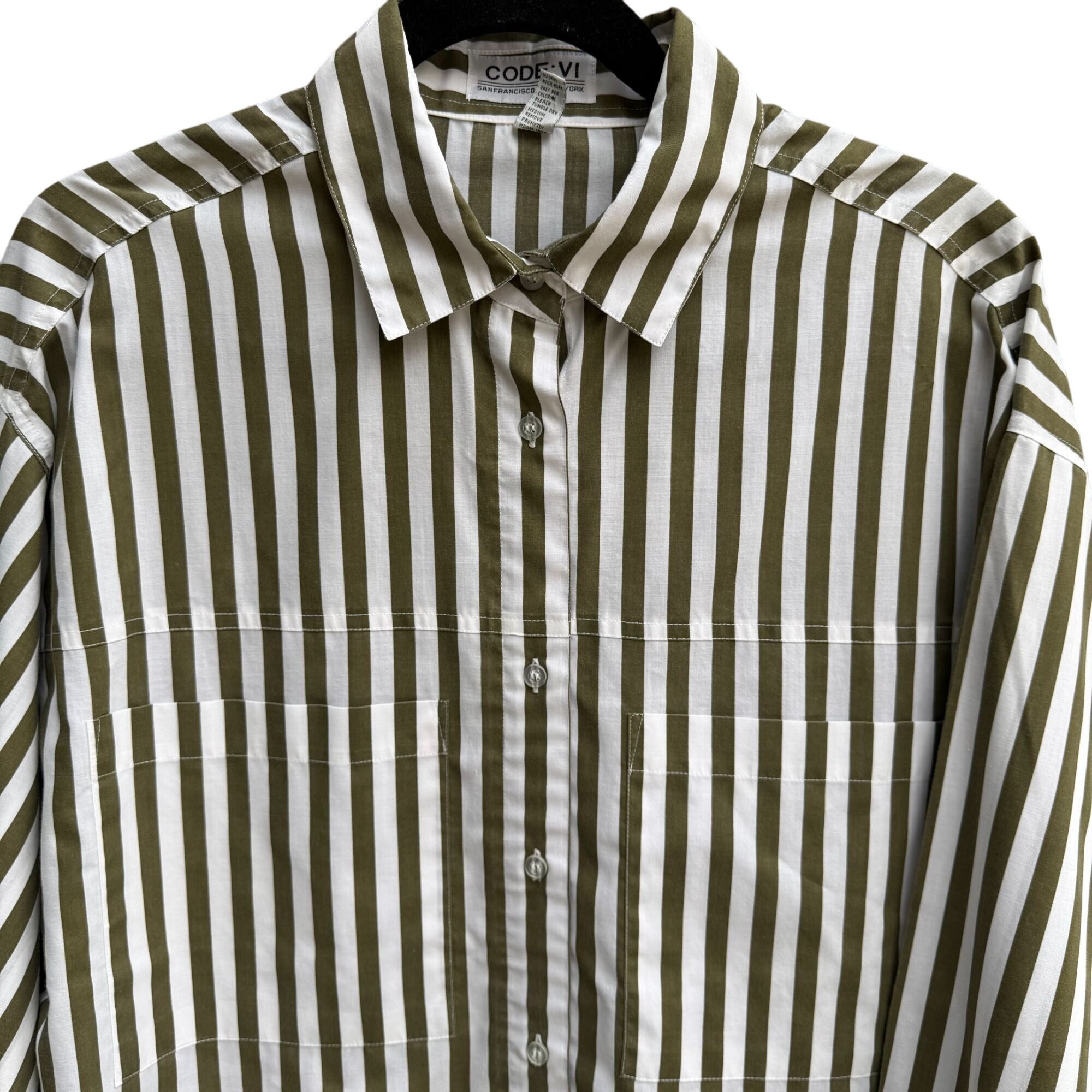 Code:Vi Vintage Womens Oversized Green White Striped Button-Up Preppy Shirt 38