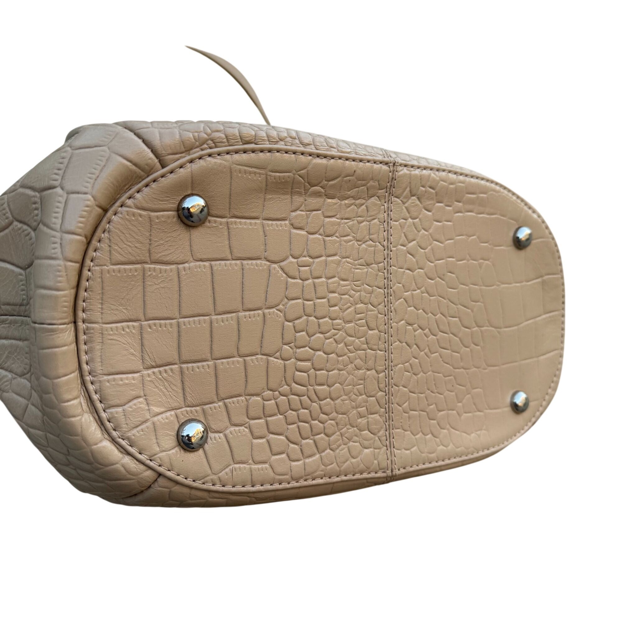 Crocodile-Embossed Genuine Leather Tote Bag Tan Multiple Pockets Zipper Closure