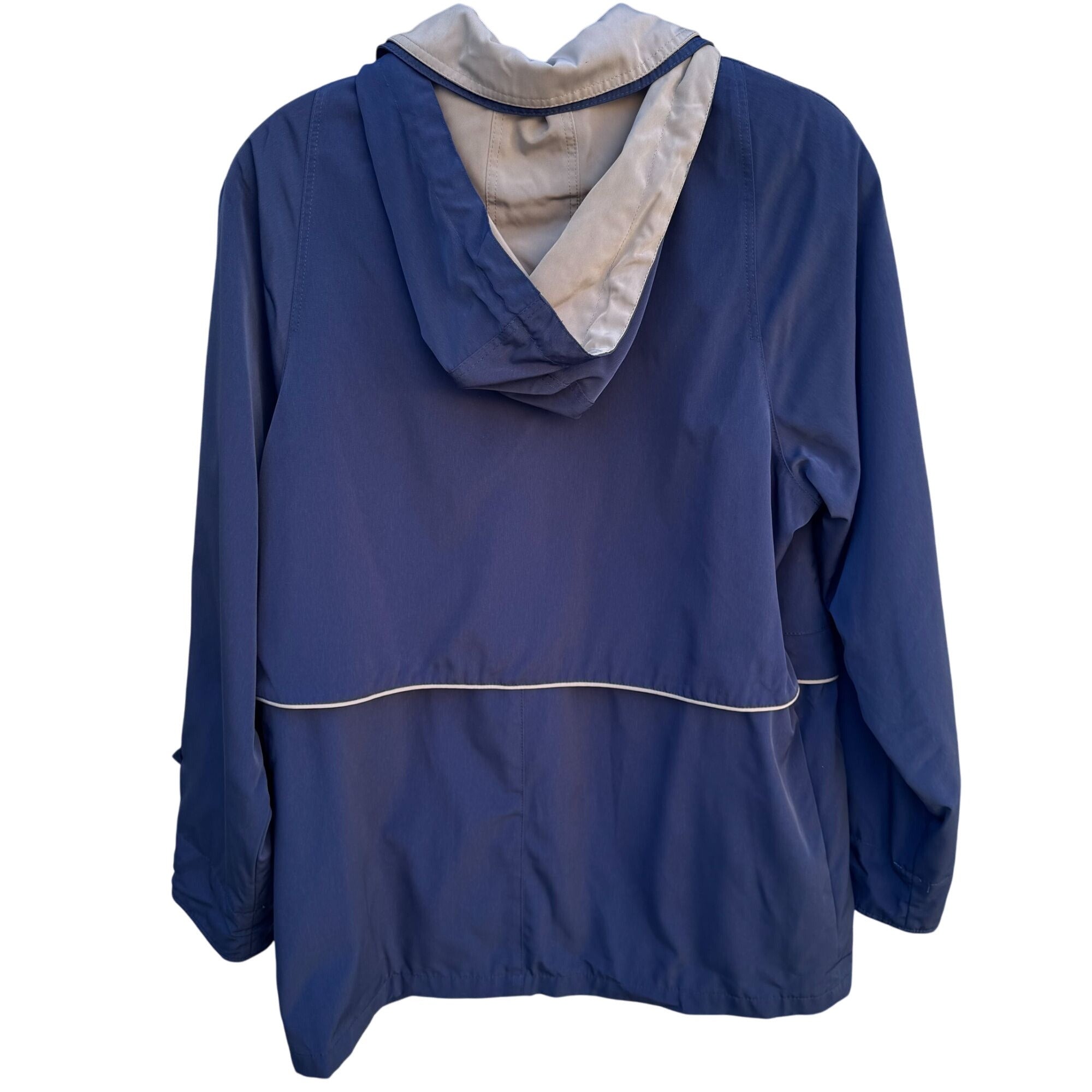 CS Signature Vintage Womens Navy Tan Hooded Jacket Coat Windbreaker Zip Pockets M