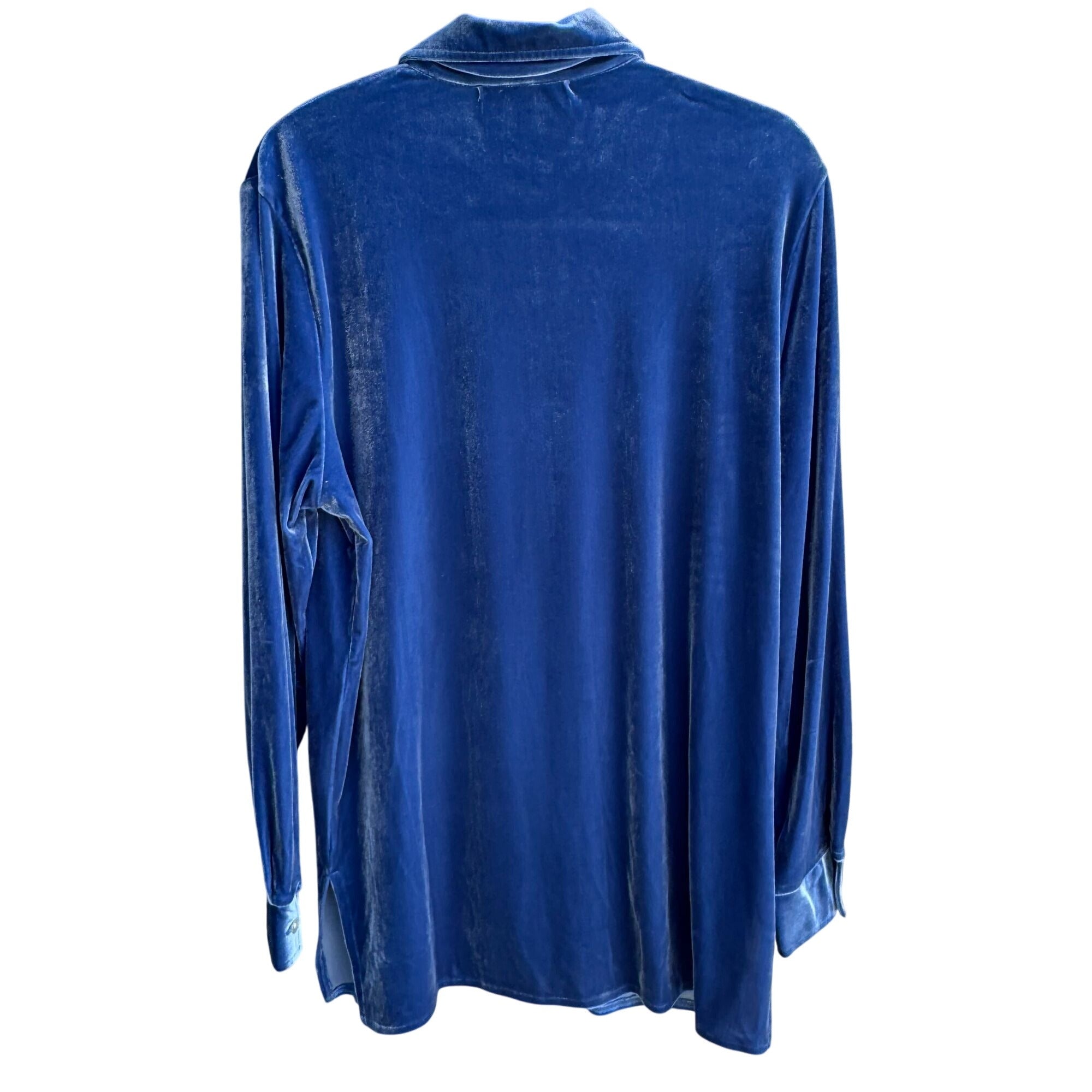Denim & Co Vintage Womens Blue Velvet Long Sleeve Glam Button-Up Shirt New S