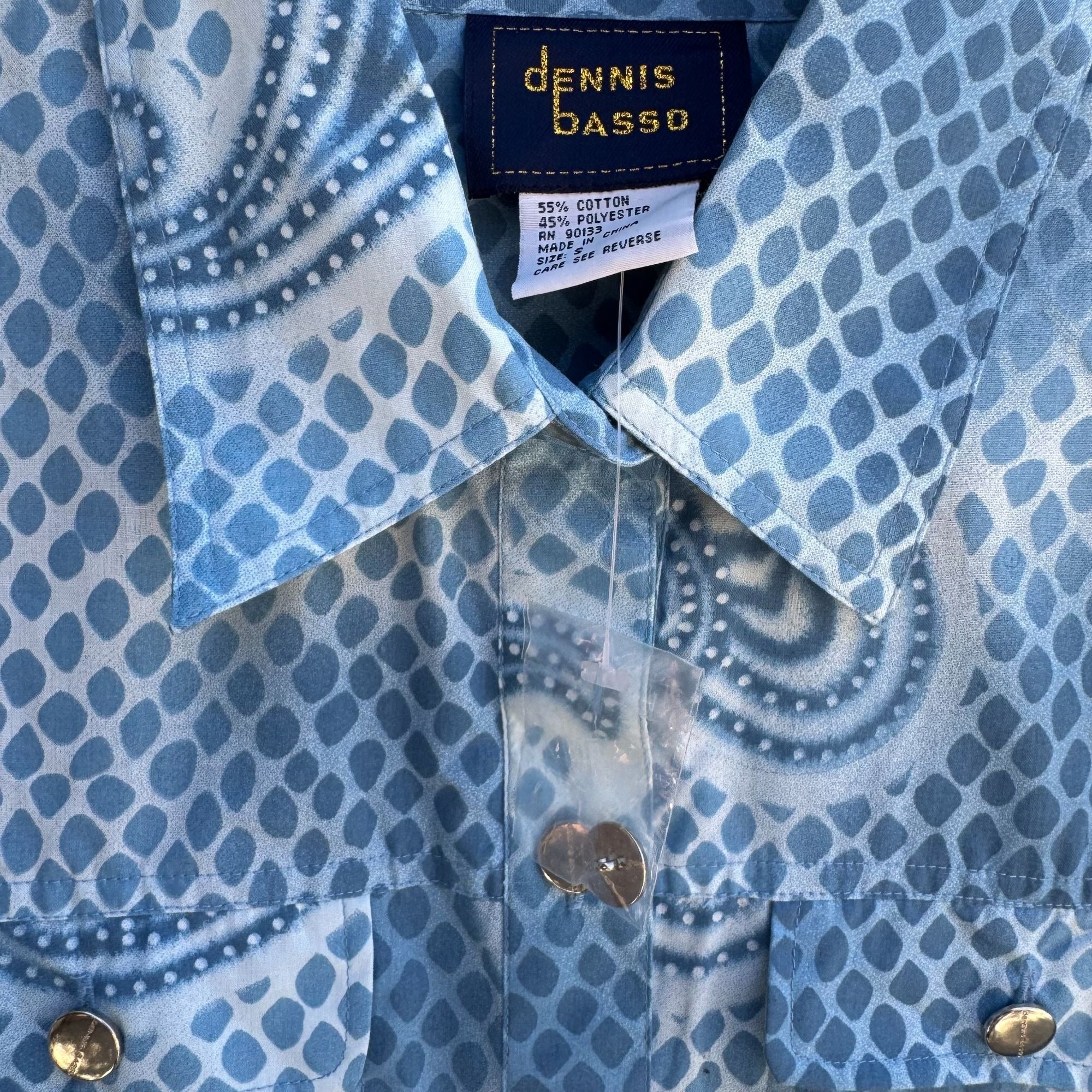 This Dennis Basso button-up shirt blends style and comfort with its blue paisley and dot print, offering a polished yet relaxed look for versatile wear.