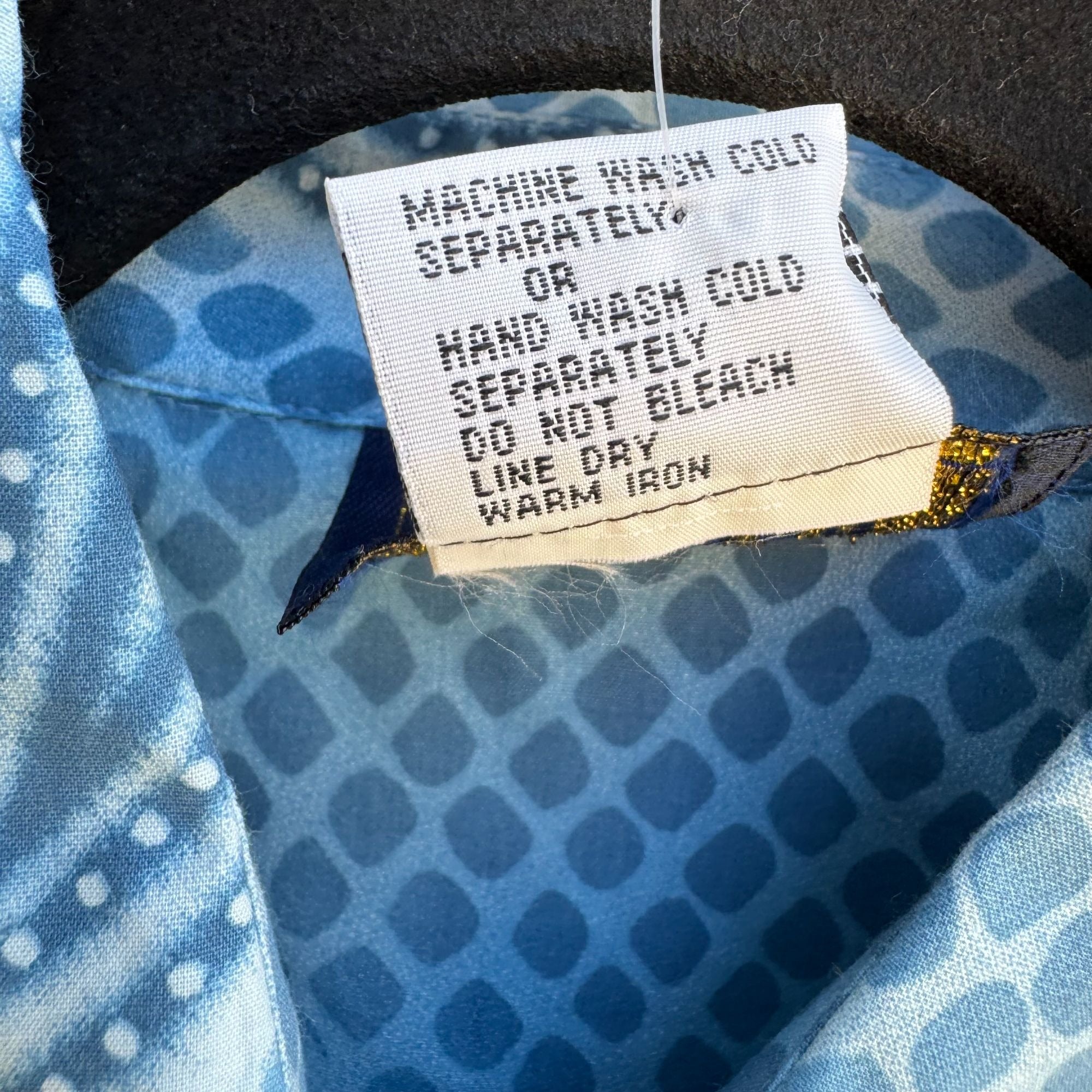 Dennis Basso Blue Paisley Snake Dot Print Long Sleeve Button-Up Shirt New S