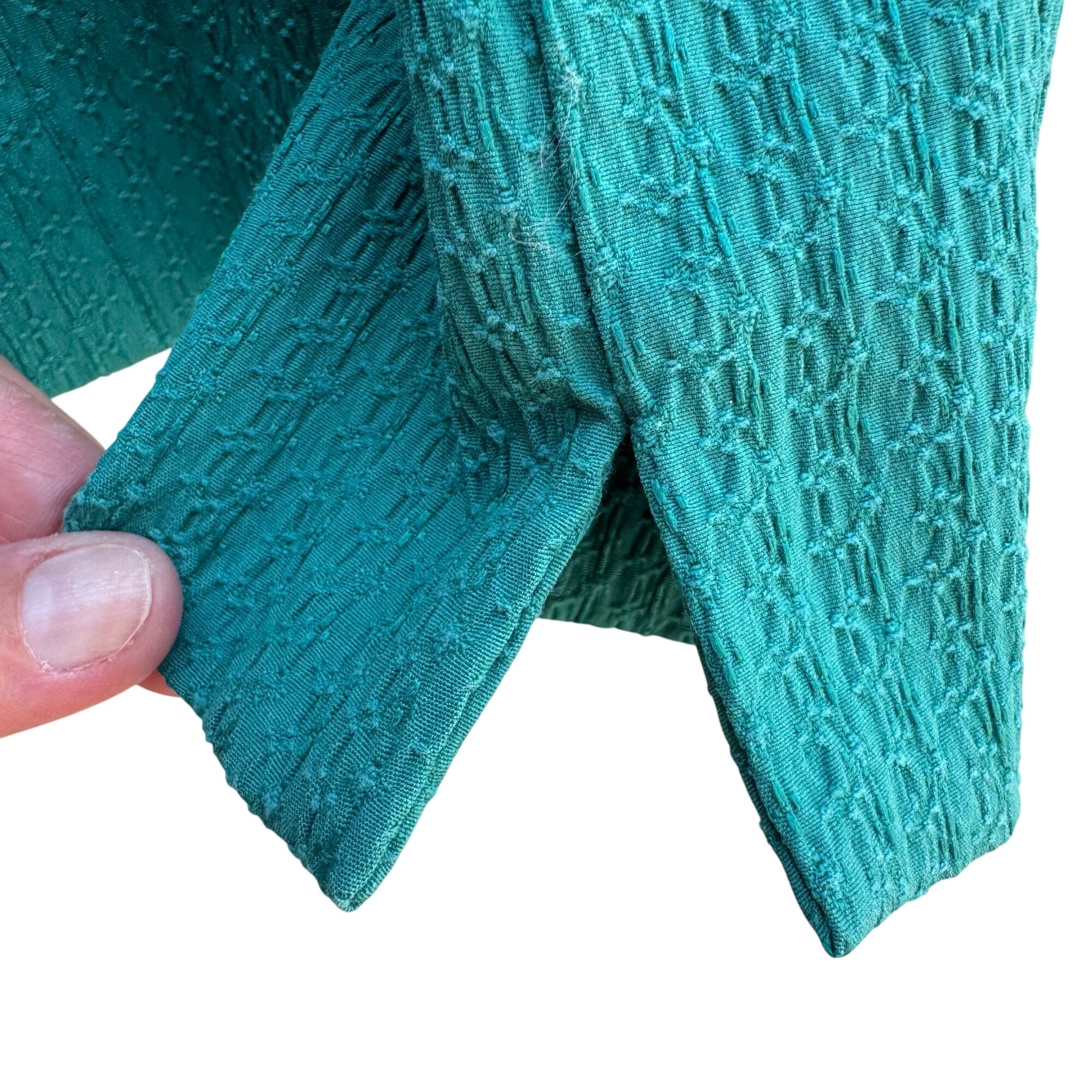 Want to make a statement without saying a word? Slip into this vibrant teal blazer and let your wardrobe do the talking. With its charming textured fabric and retro buttons, you'll be channeling your inner fashionista while secretly pretending you're the CEO of a 70s disco empire.