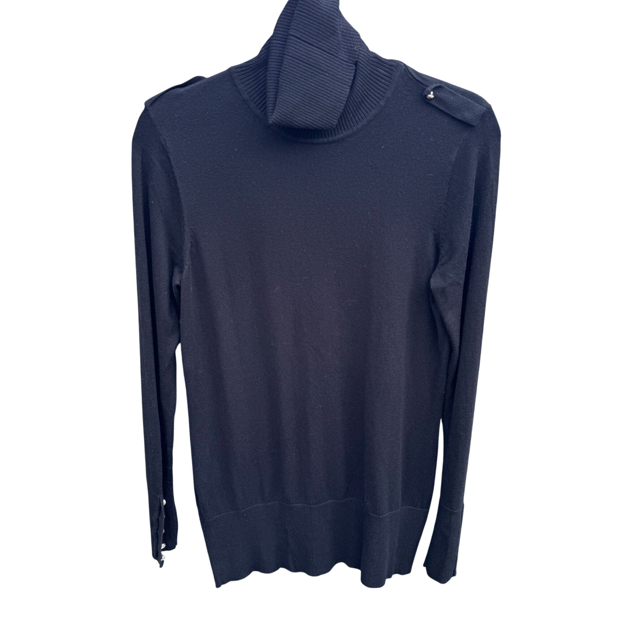 Diane Gilman DG2 Black Long Sleeve Knit Cowl Neck Sweater Button Sleeve Epaulets