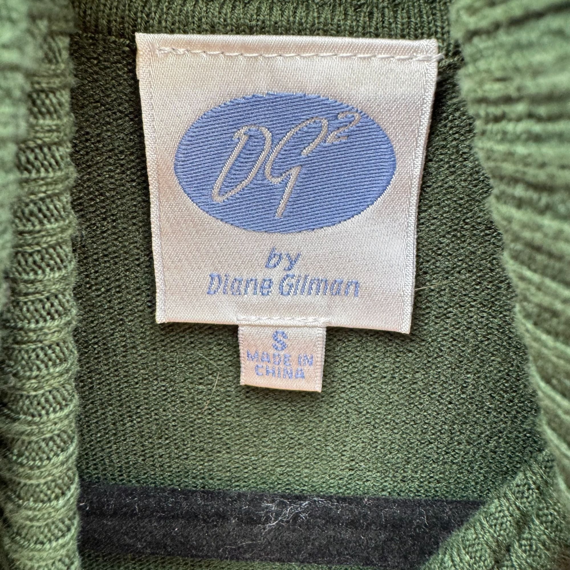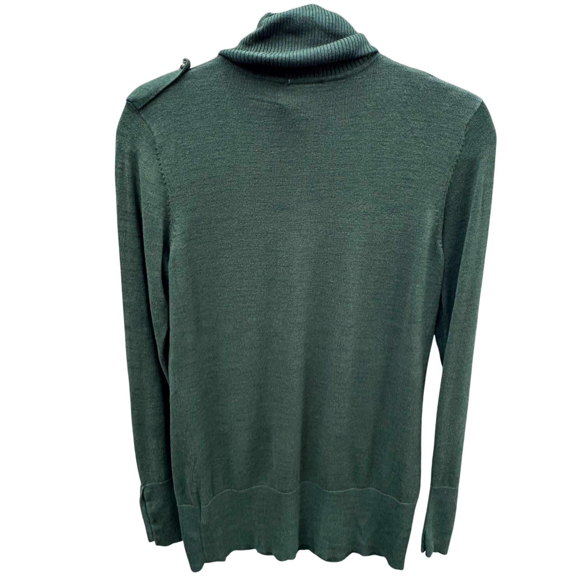 Diane Gilman Green DG2 Long Sleeve Knit Cowl Neck Sweater Button Sleeve Epaulets