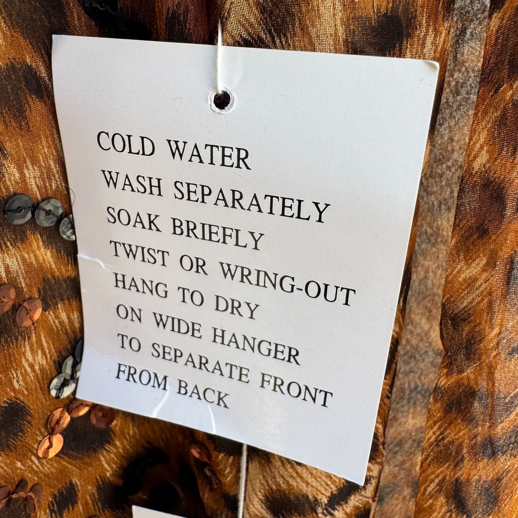 Diane Gilman Leopard Print Sequin Cardigan Duster Coat Silk Brown Black New S