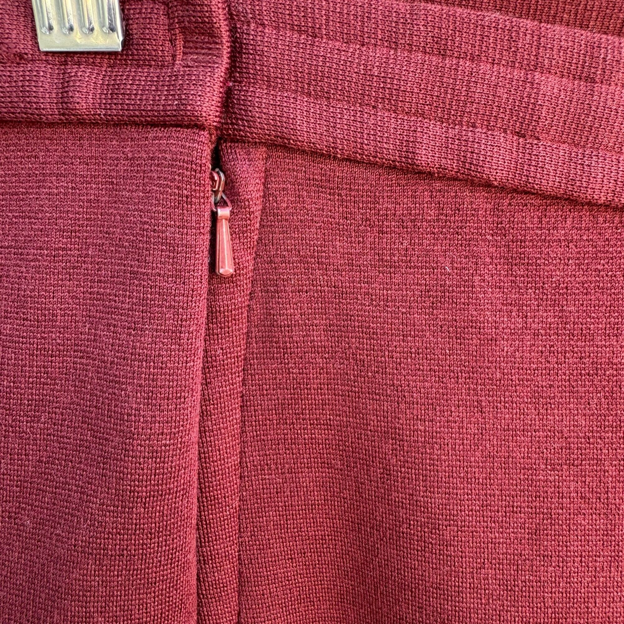 Dorce Knits Vintage Womens Burgundy High-Waist Knit Wool A Line Side Zip Skirt