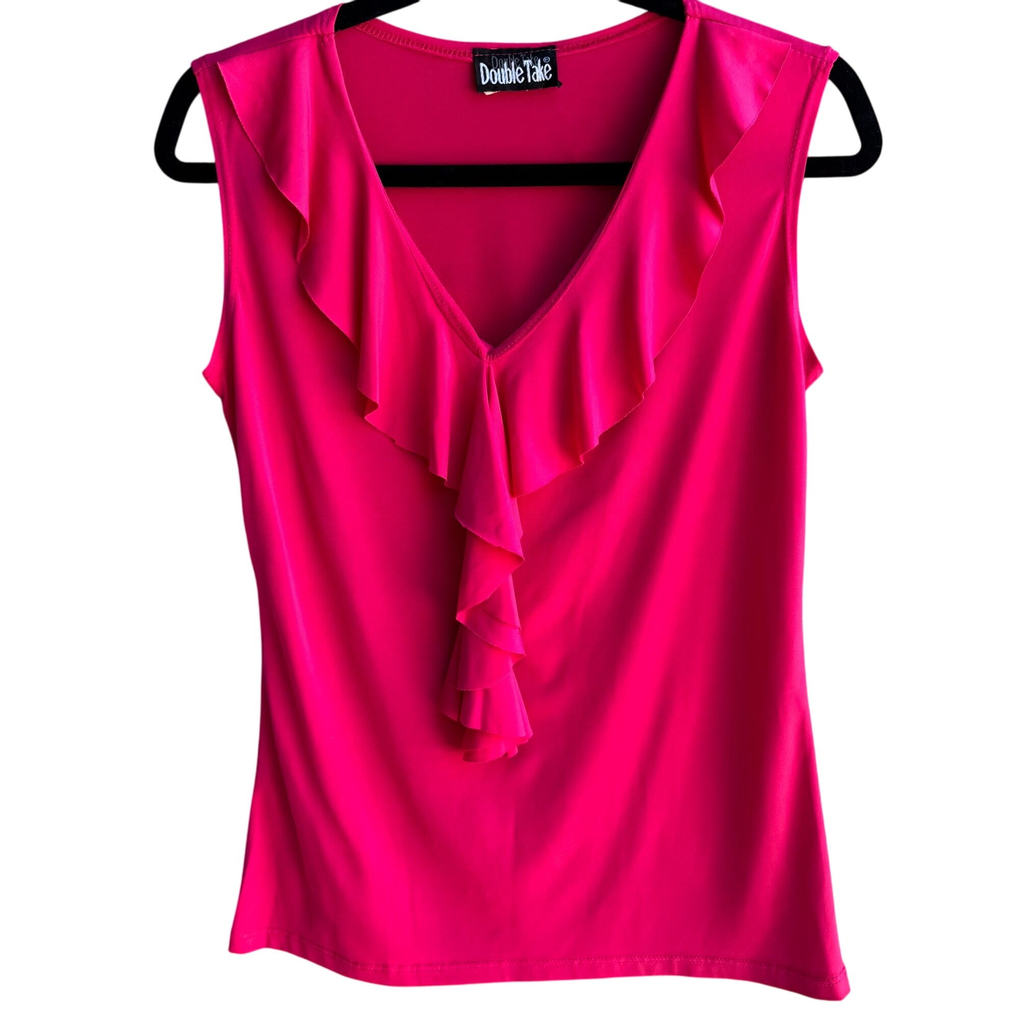 Double Take Vintage Y2K Womens Hot Pink Ruffle V-Neck Sleeveless Top Blouse M