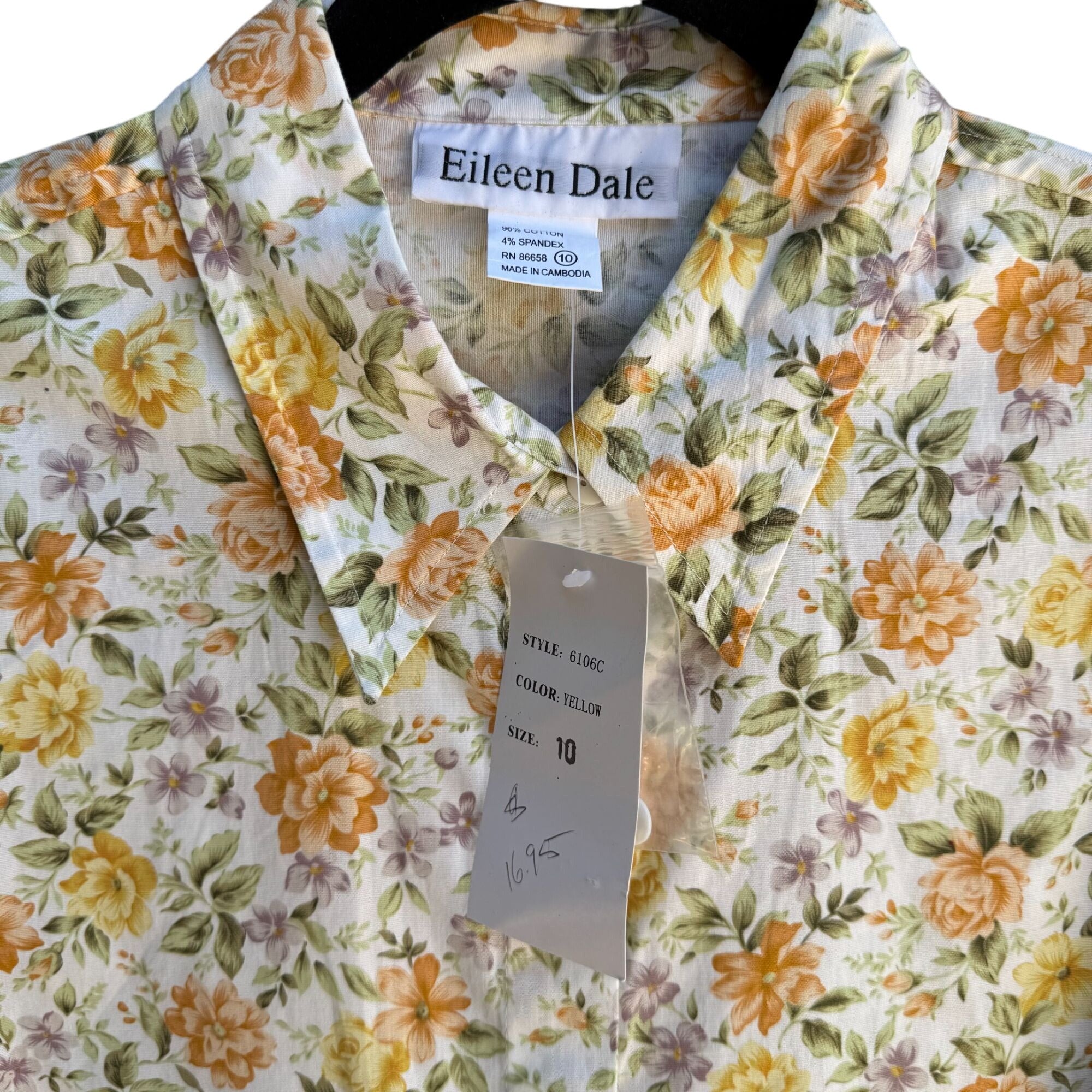 Eileen Dale Vintage New Floral Print 3/4 Sleeve Roll Cuff Stretch Shirt Blouse 10