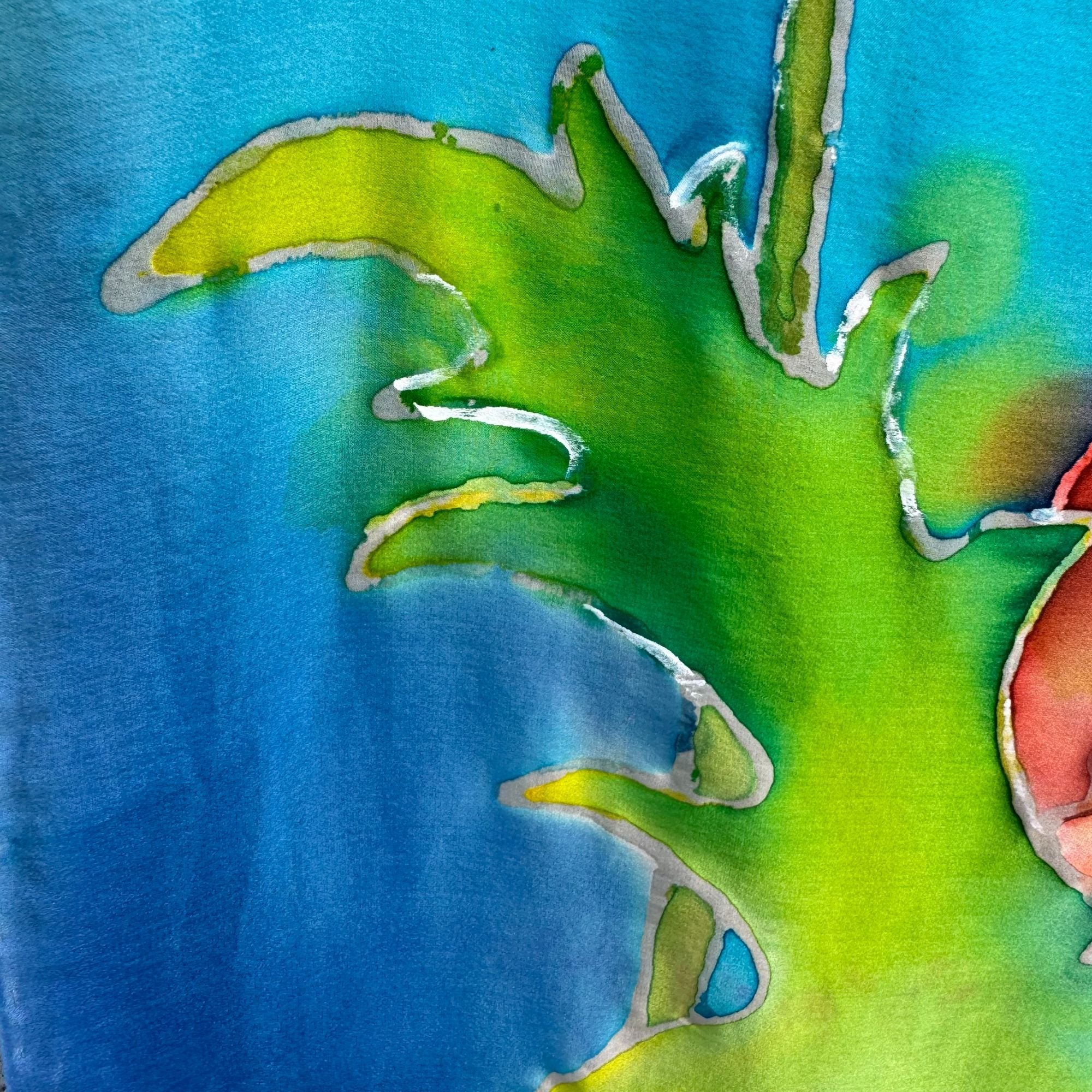 Elizabeth Hand Painted Hand Sewn Silk Bold Floral Poppy Watercolor Scarf Wrap