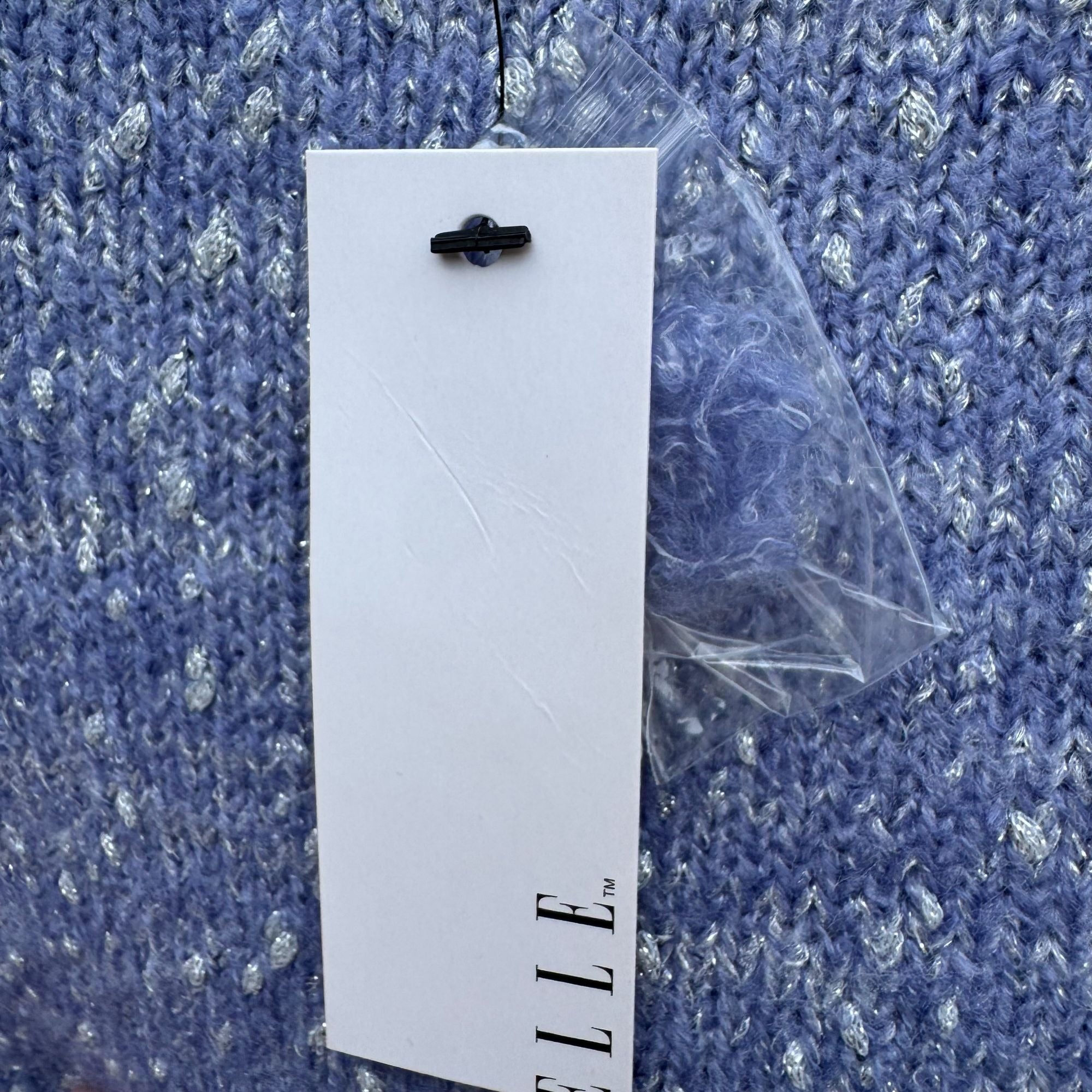 Elle Womens M Blue Speckled Metallic Knit Sweater Scalloped Hem Cozy Winter New