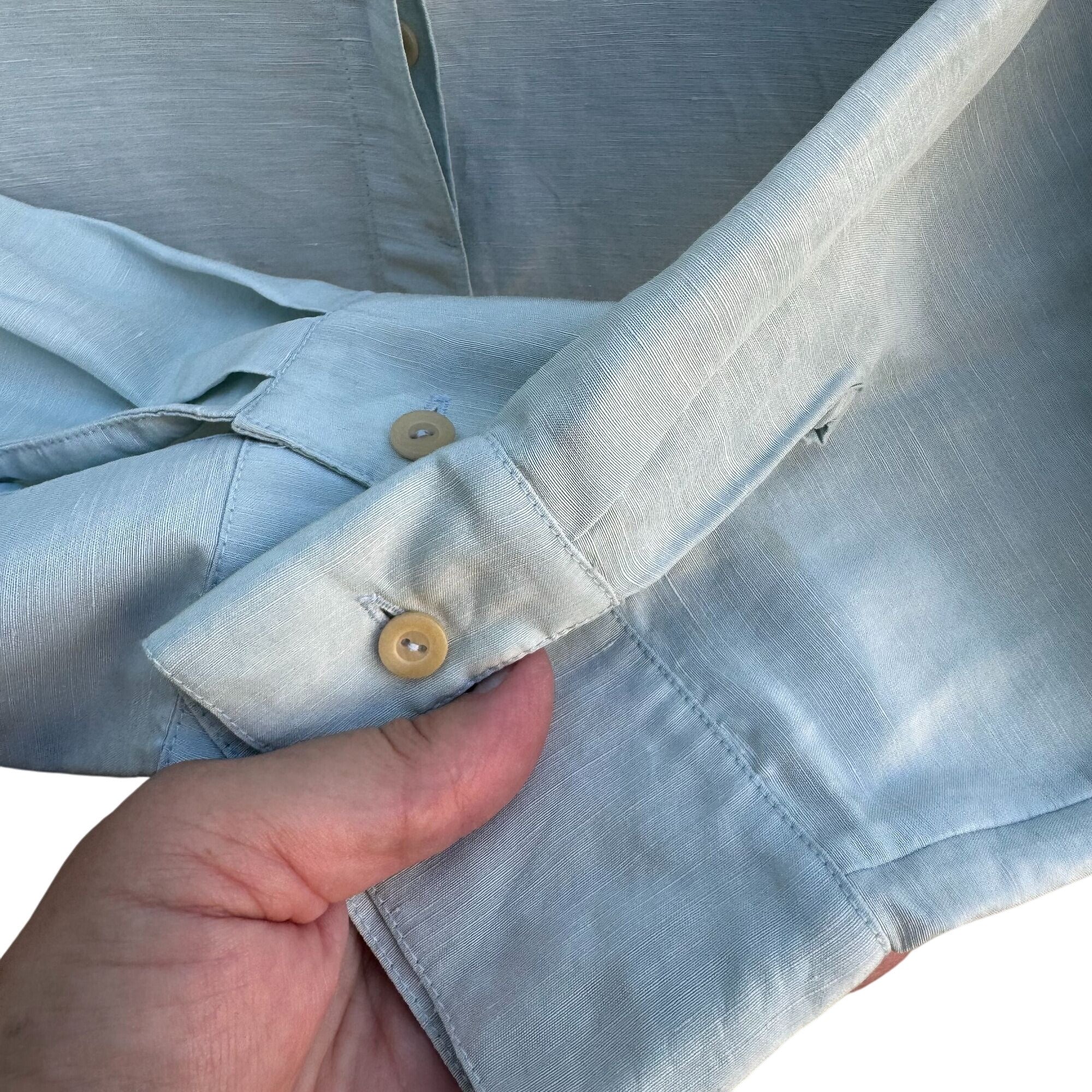 Emanuel Ungaro Vintage Womens Light Blue Green Long Sleeve Button-Up Blouse 16