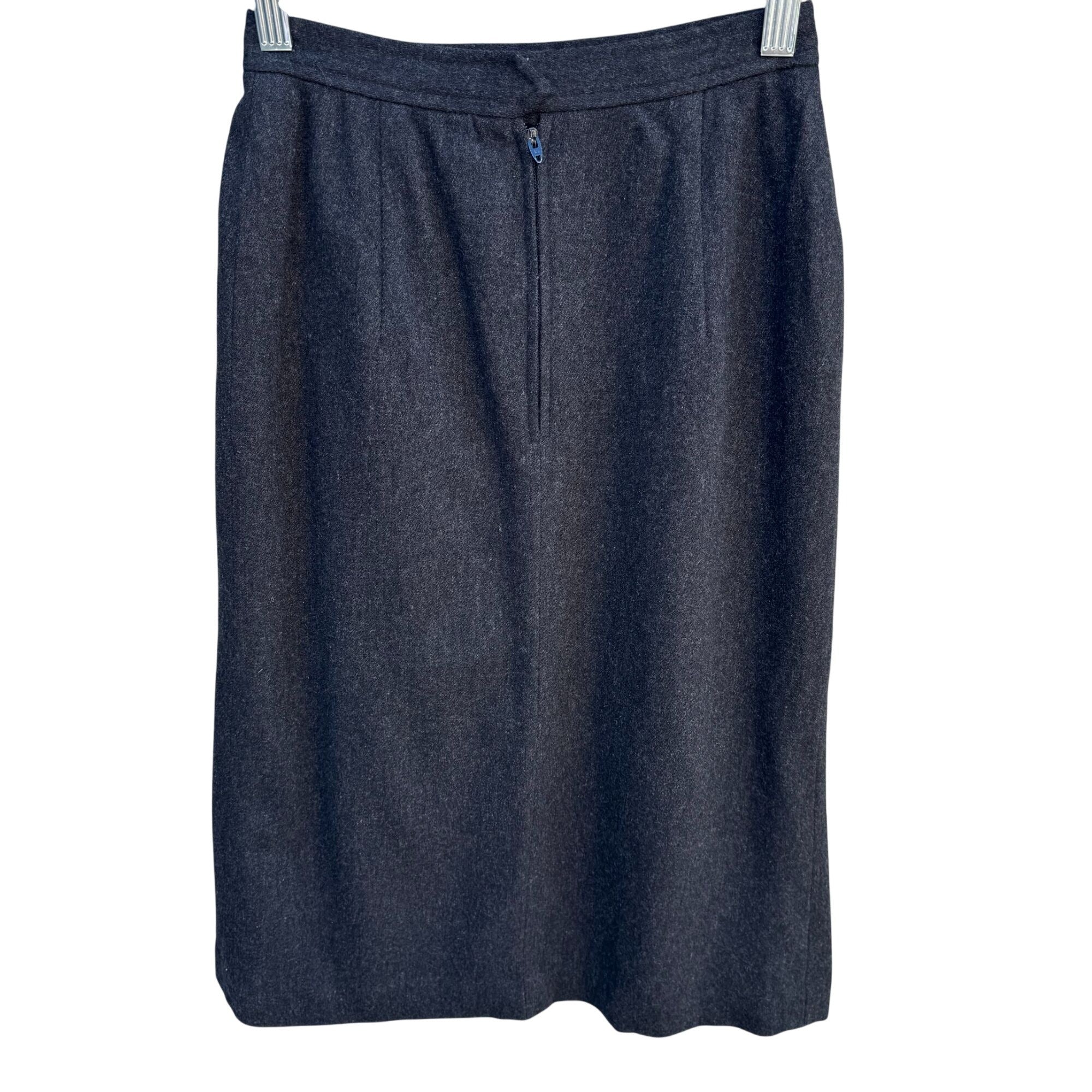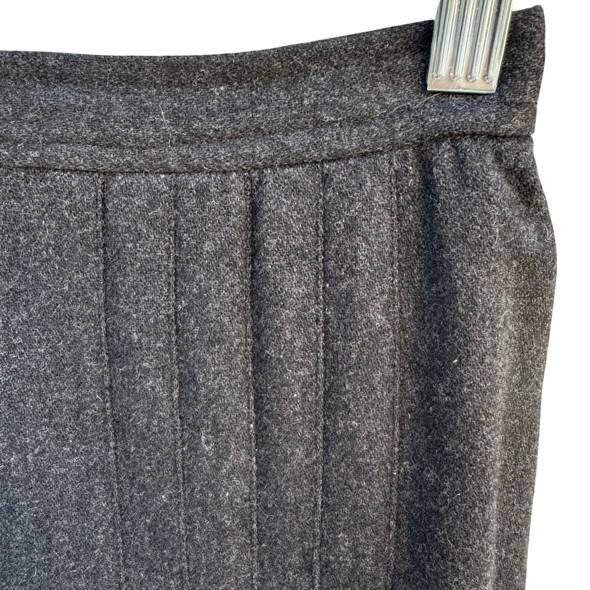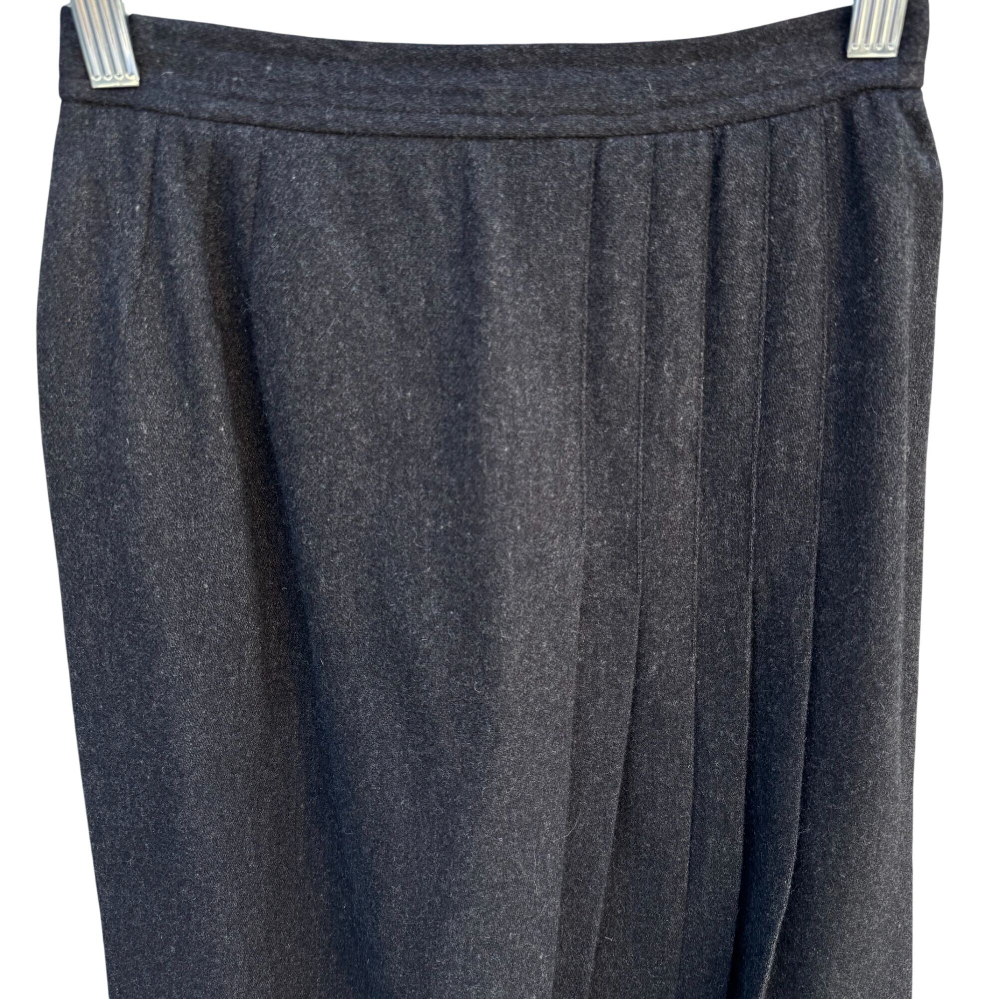 Evan-Picone I Magnin Vintage Wool Blend Inverted Side Pleat Midi Skirt Charcoal