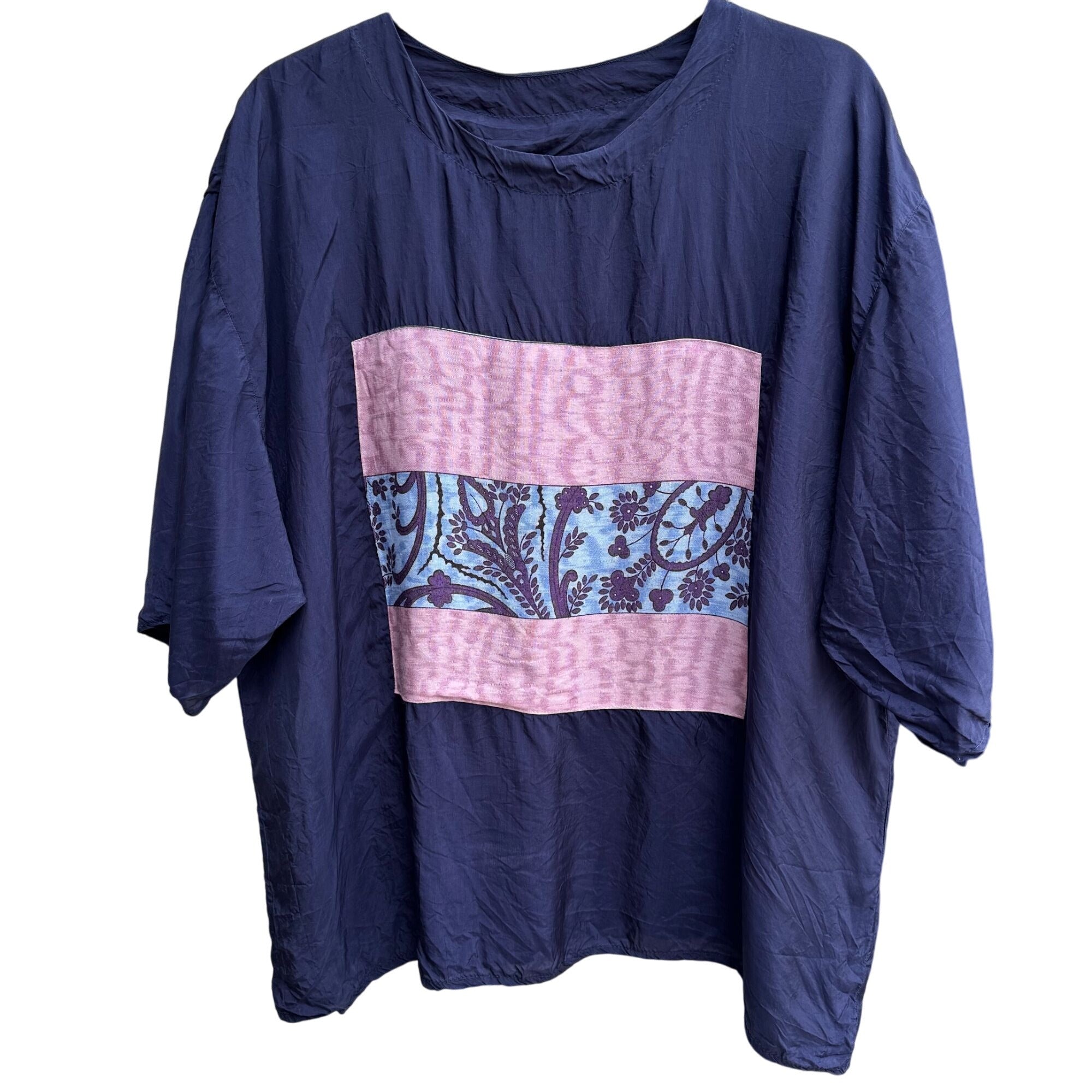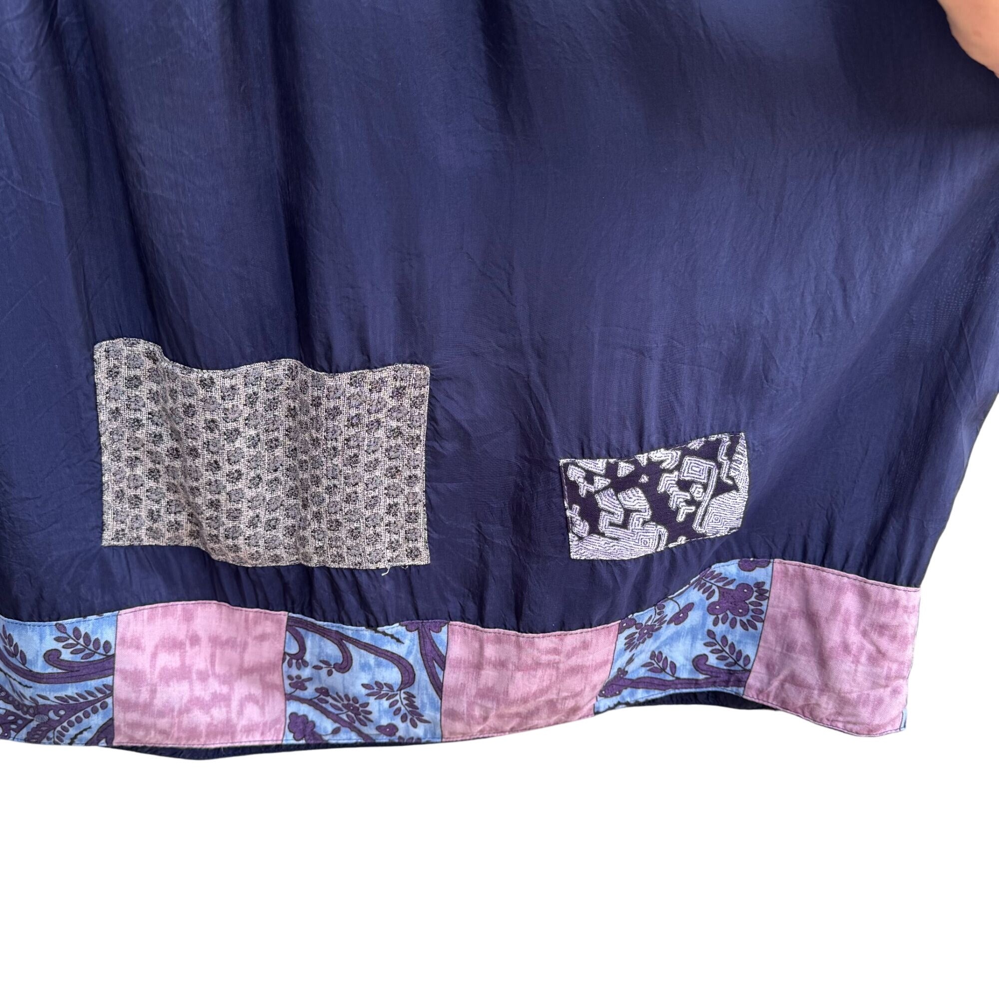 Fixsun Casual Vintage Silk Boho Festival Flowy Blouse Skirt Patchwork Set XL