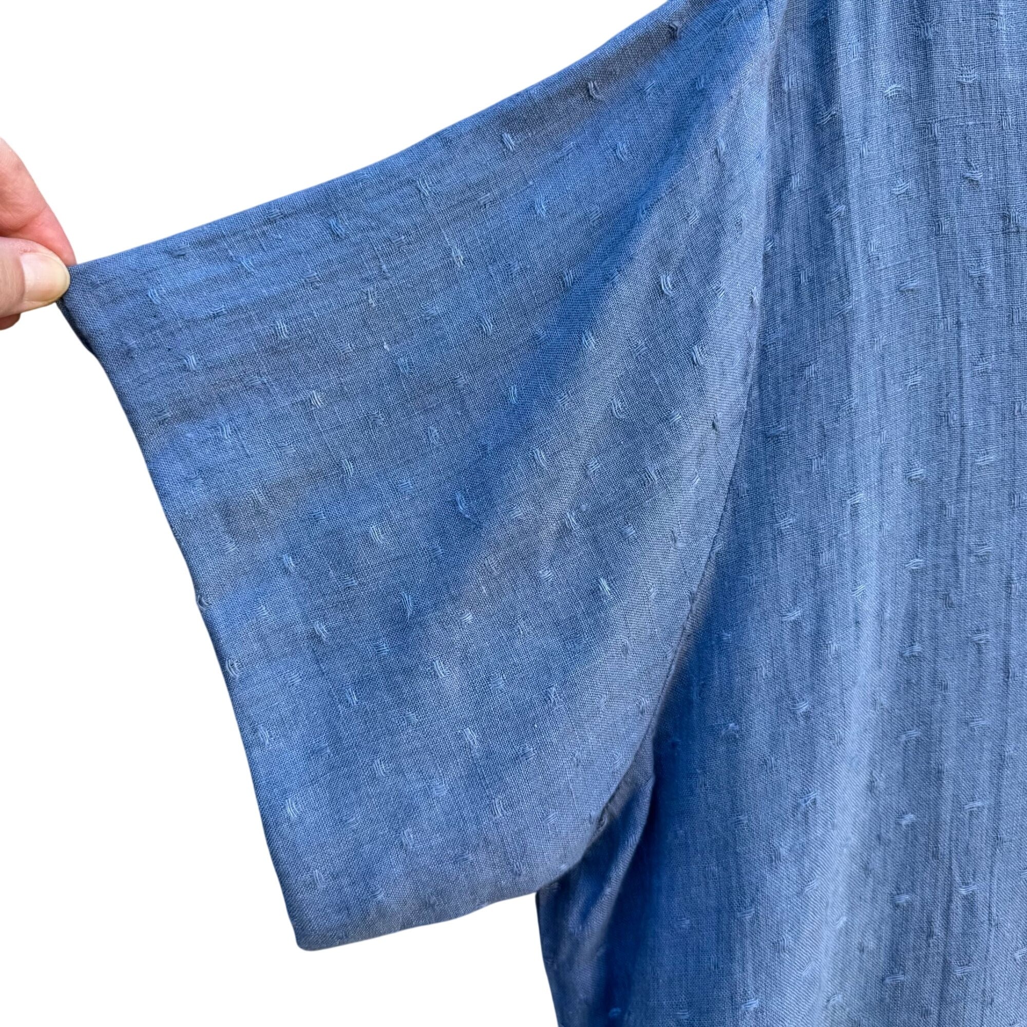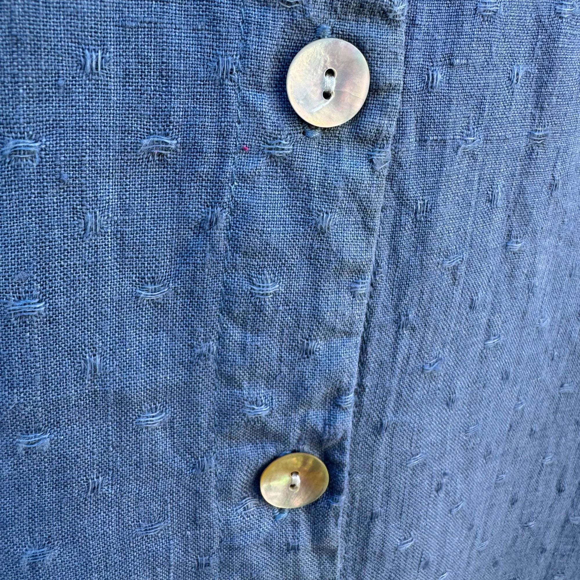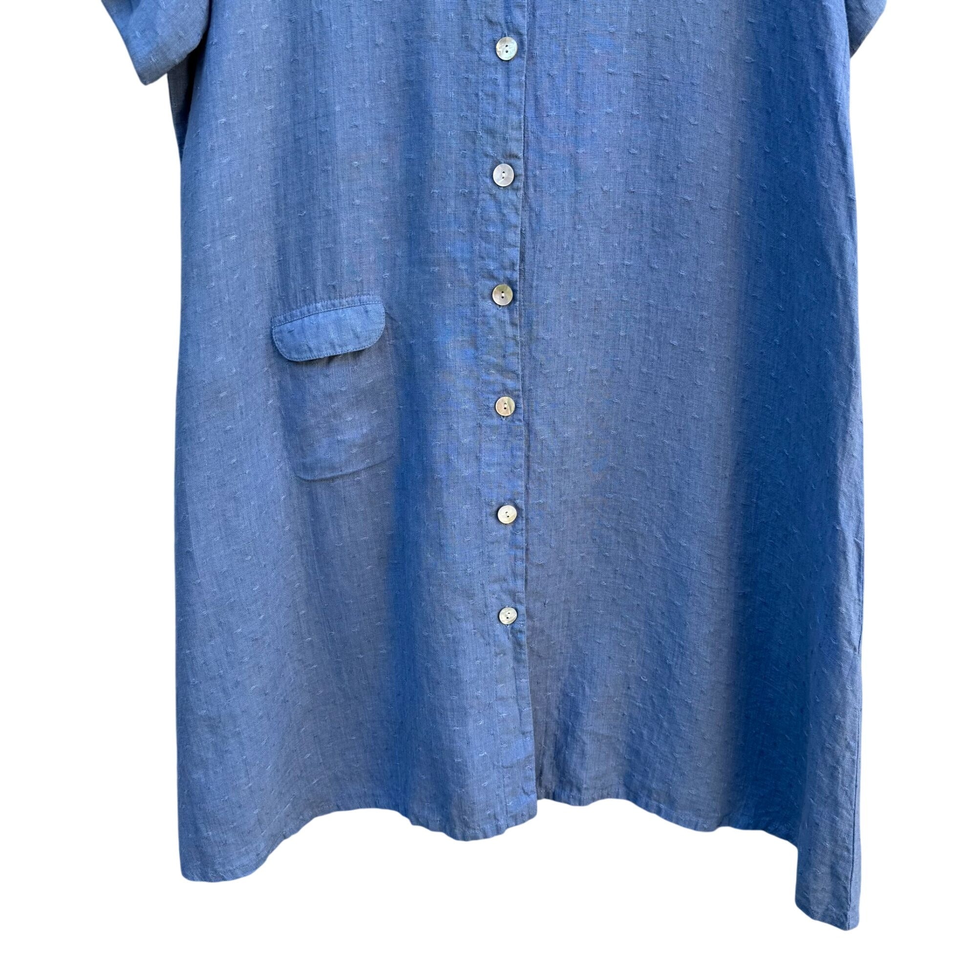 Flax Womens Lagenlook Boho Blue Linen V Neck Pearlized Button Tunic Midi Dress L