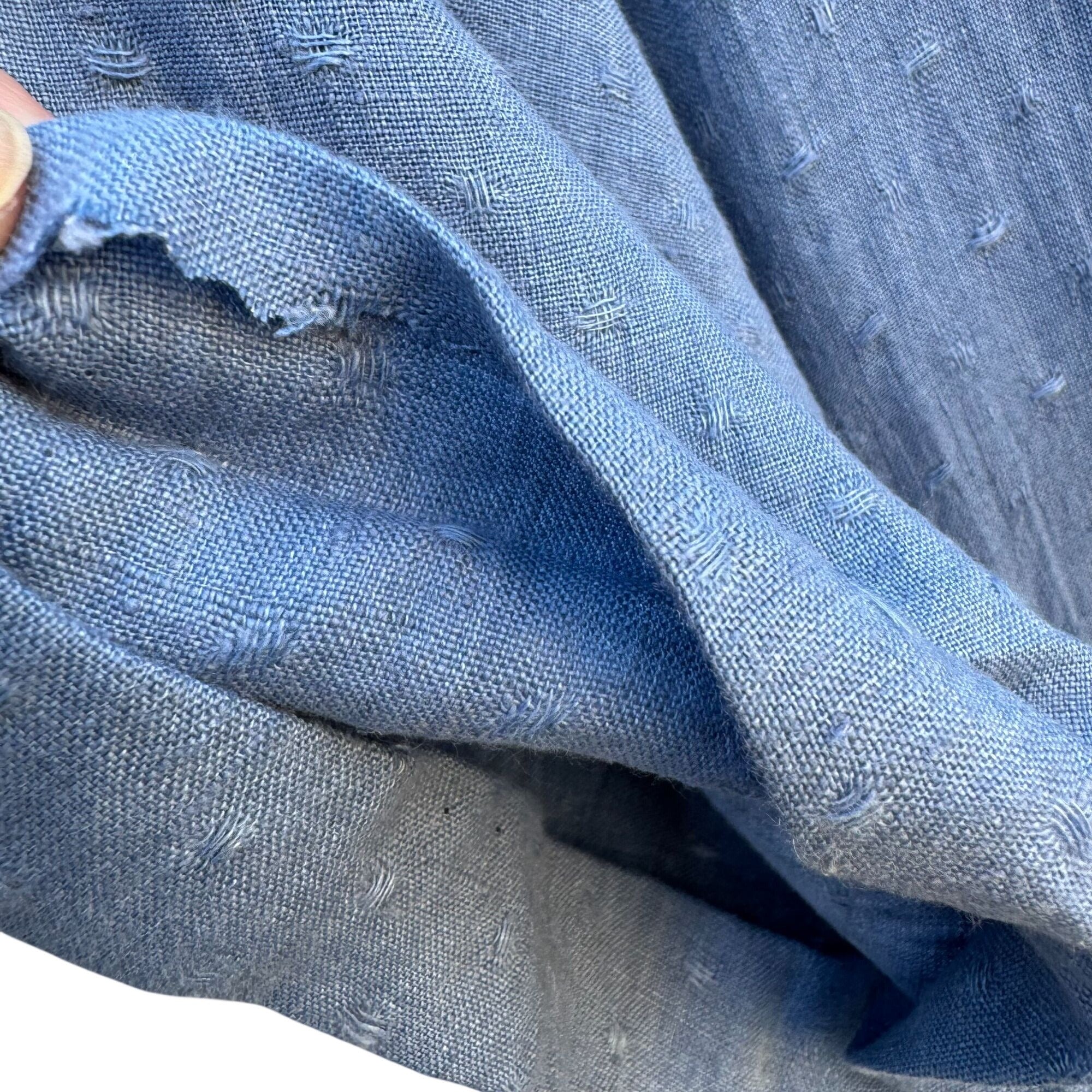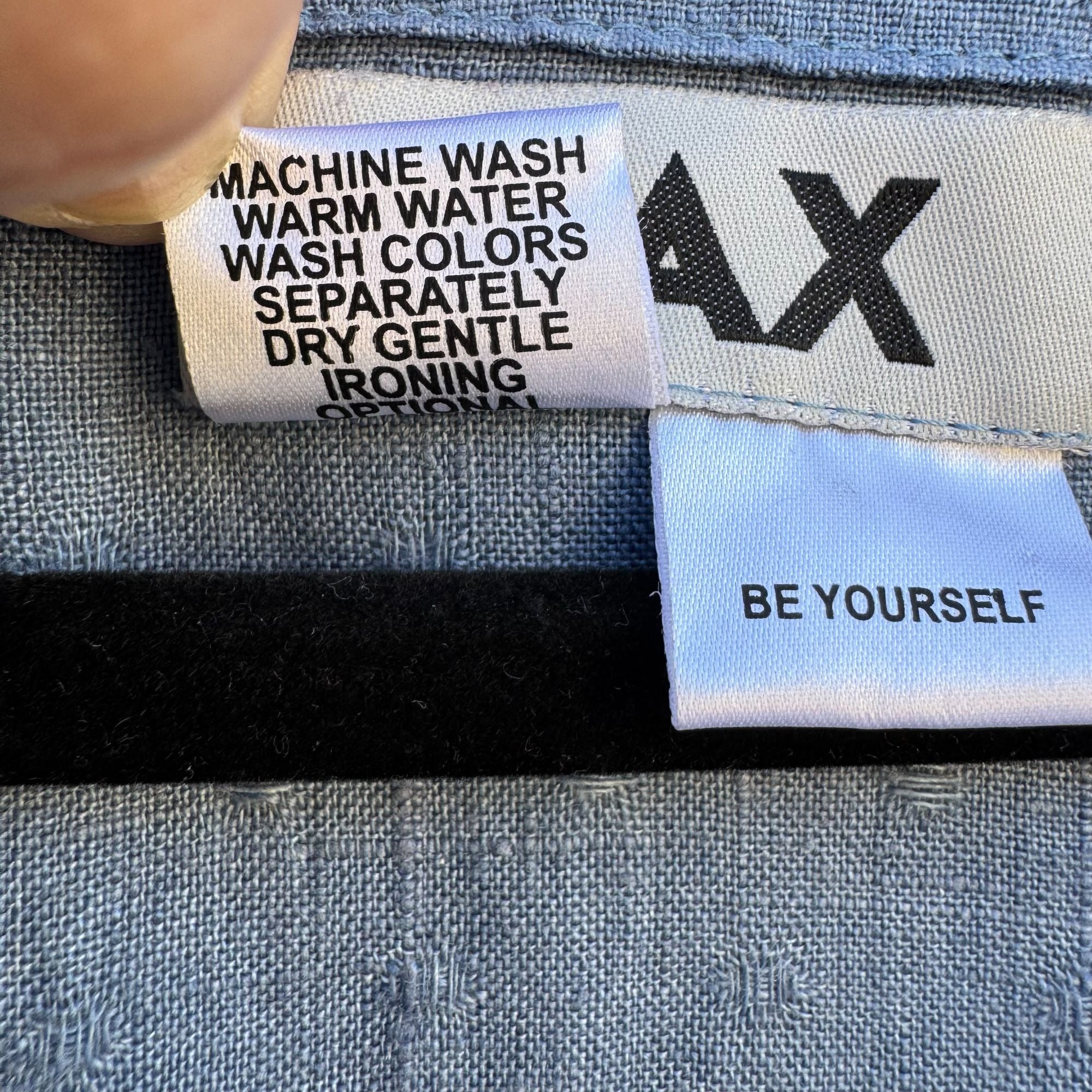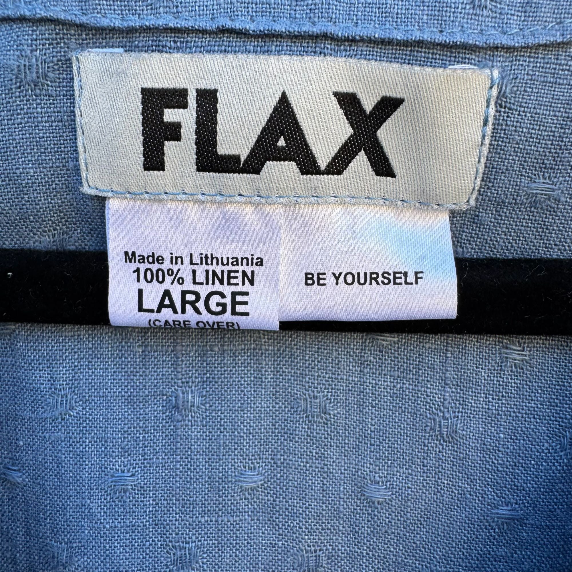 Flax Womens Lagenlook Boho Blue Linen V Neck Pearlized Button Tunic Midi Dress L