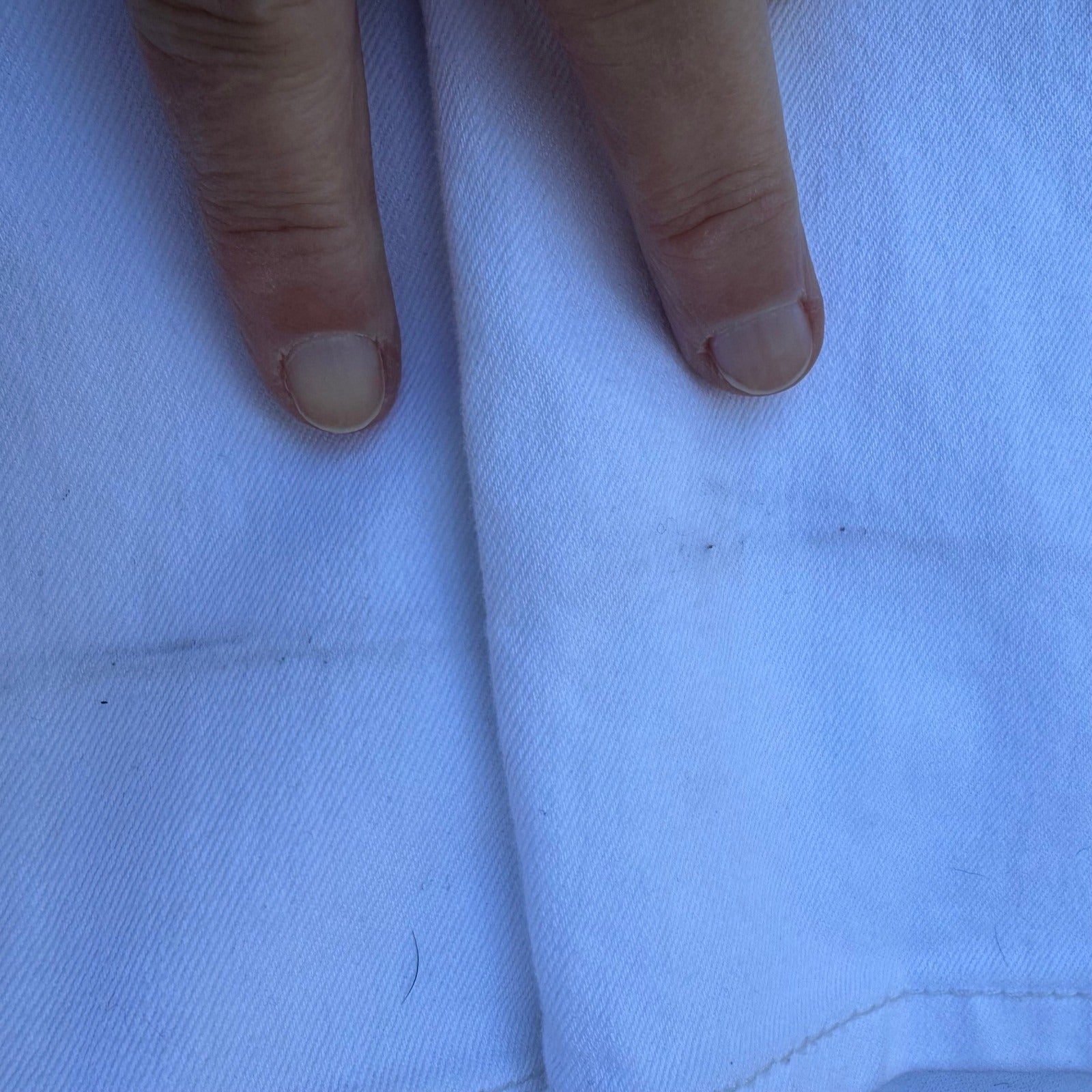 Disney Alice Through the Looking Glass Collection skinny jeans by G by Giuliana Rancic offer a whimsical touch to a classic white denim look. These pants feature charming black heart embroidery on the front coin pocket and back left pocket, along with a subtle tonal 'G' logo on the back right pocket. Note that there are minor faint marks near the hem as shown in the detail photos.