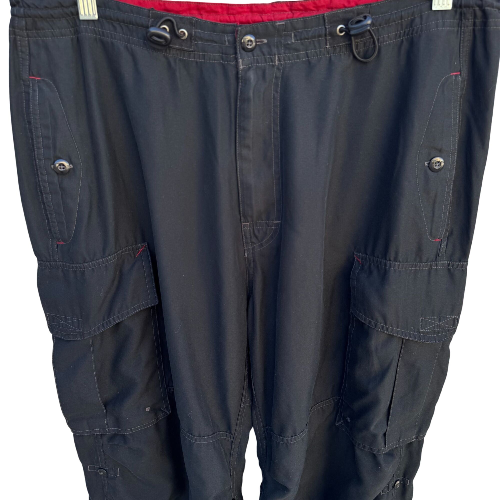 Gap Vintage Mens Black Cargo Baggy Paratrooper Drawstring Waist Parachute Pants